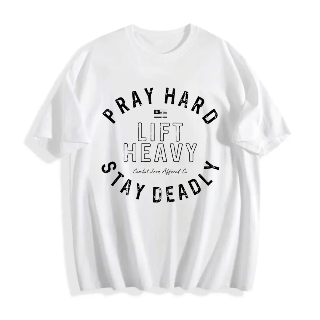 Men’s T-Shirt Casual Style Graphic Tee 100% Cotton S-5XL Plus Size Pray Hard Lift Heavy Stay Deadly Text Design Gym Fitness Enthusiasts Ideal Gift For Workout Buddies Phantom Troupe Anime men’s shirts