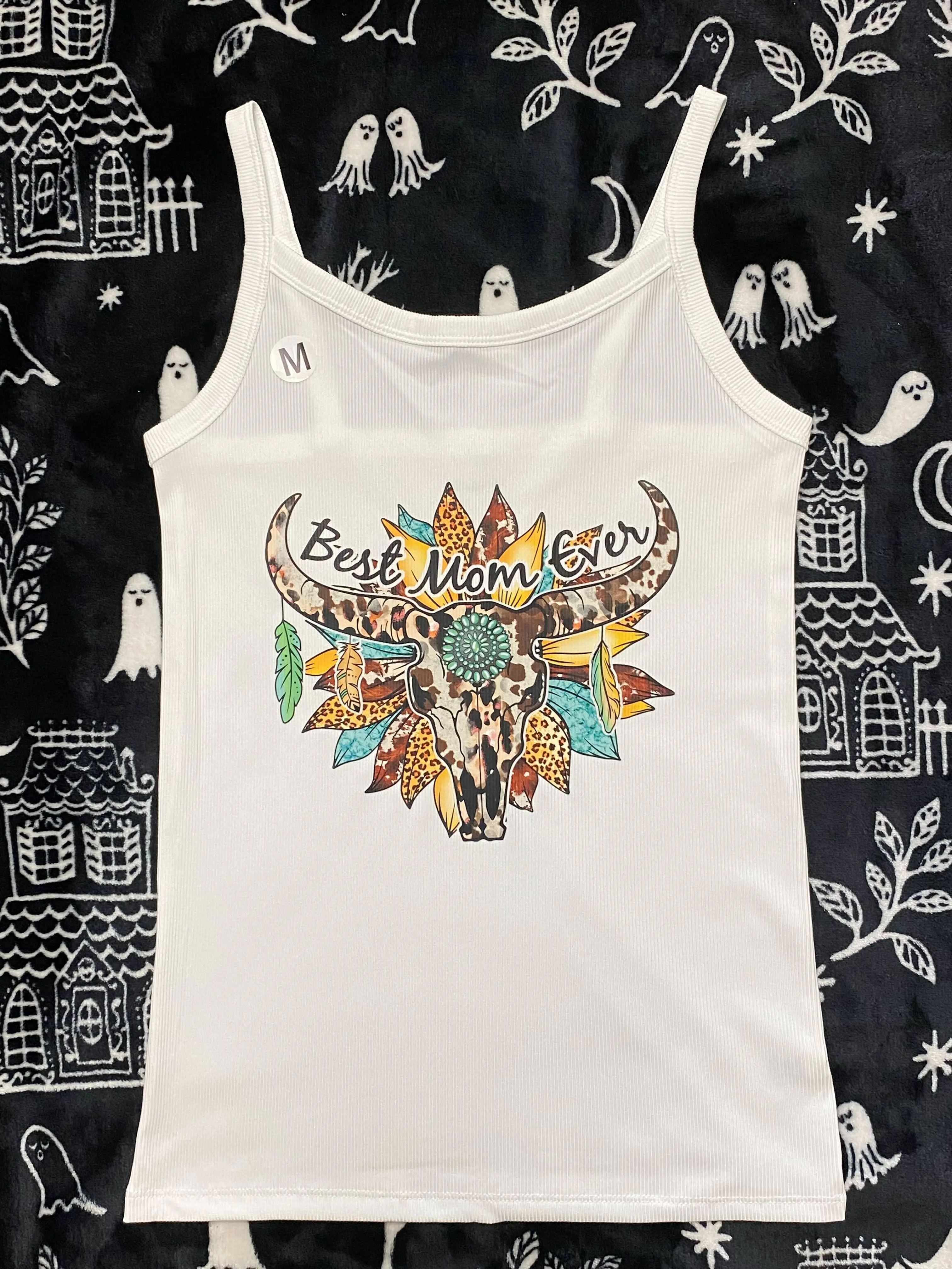 size medium white buttery soft tank with best mom ever rustic/country vibe