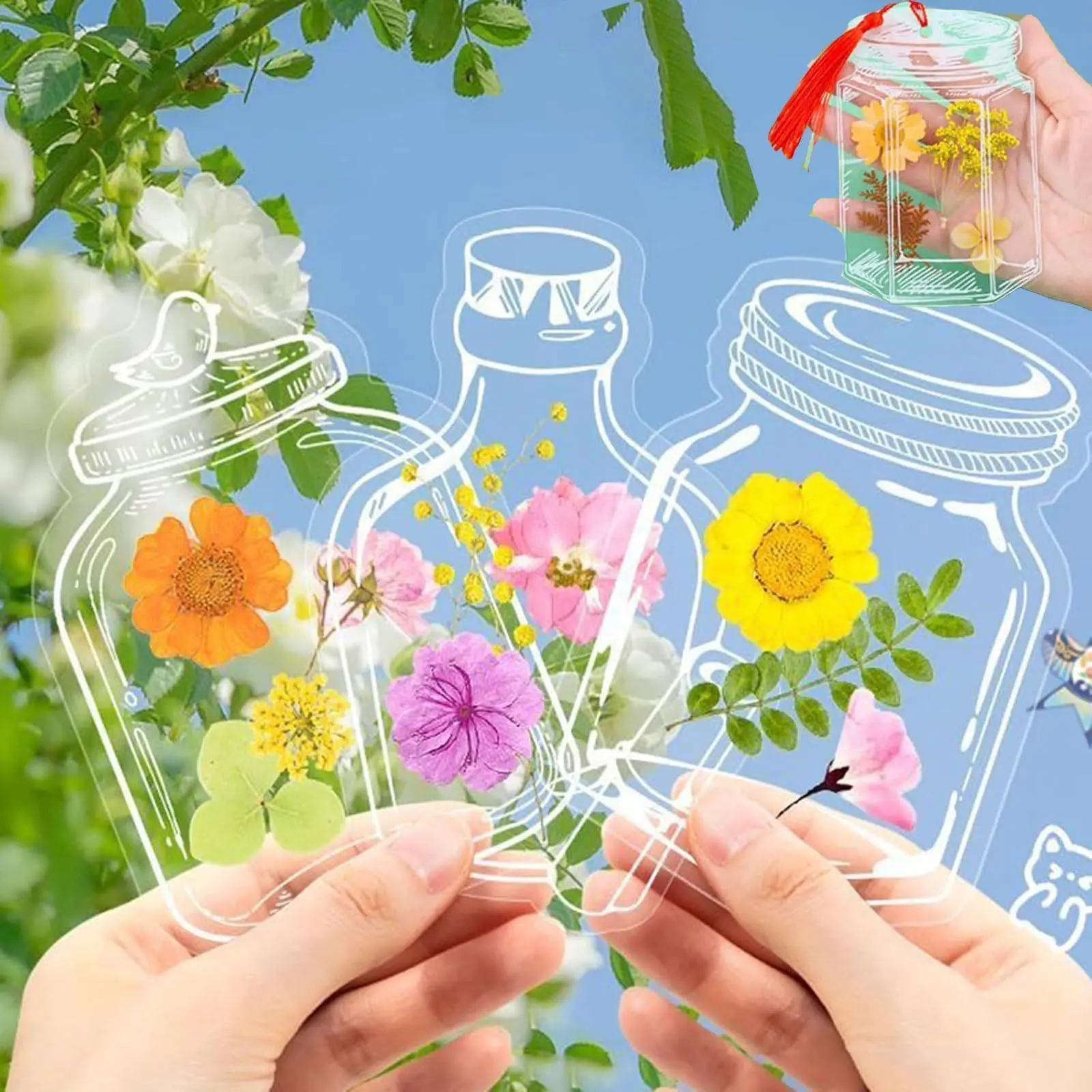 Enhance your reading experience with this beautiful and abundant DIY set of transparent dried flower bookmarks. Each set includes 40/20 pieces, featuring a variety of shapes and patterns, making it perfect for creating your own unique projects.
