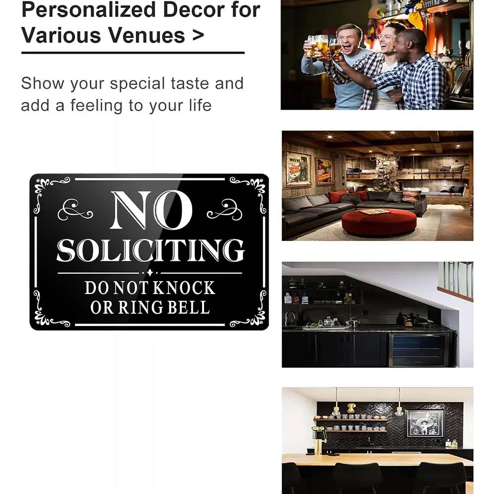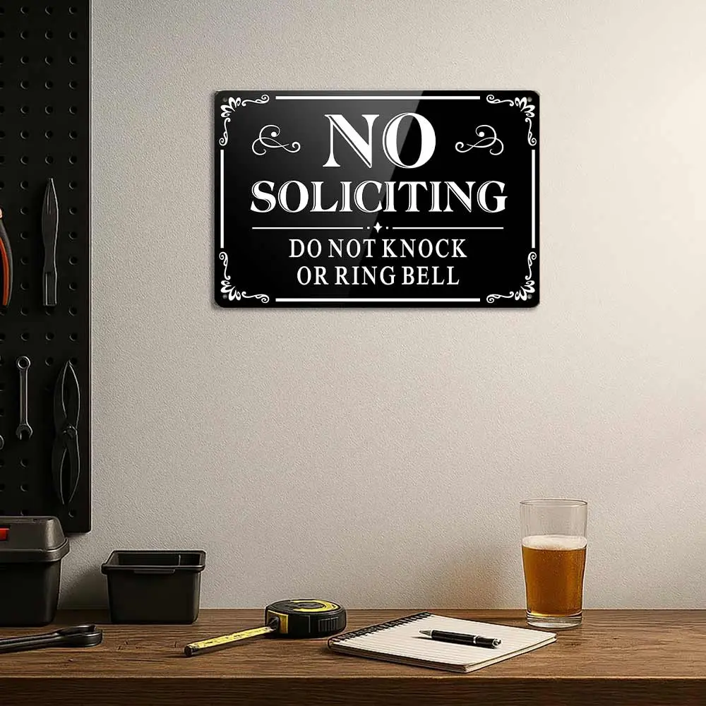 No cap, this classy yet firm "No Soliciting" metal sign is exactly what your front door, porch, or entryway needs! Crafted from high-quality aluminum (lightweight yet durable), this 12x8 inch sign fits perfectly on front doors, porch railings, or entryway walls—adding that polite but unapologetic vibe TikTokers rave about. It’s the ultimate boundary-setting decor trend for anyone tired of unwanted visitors!