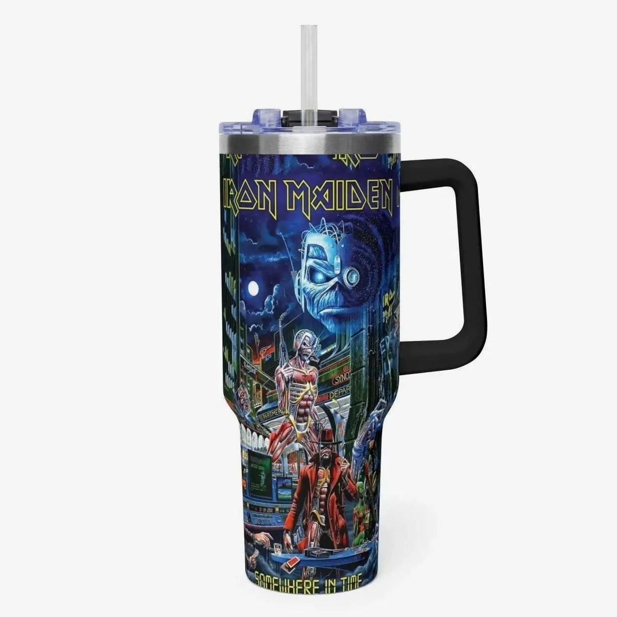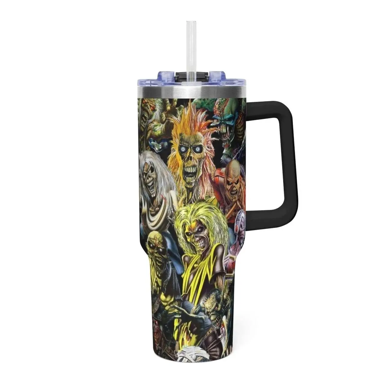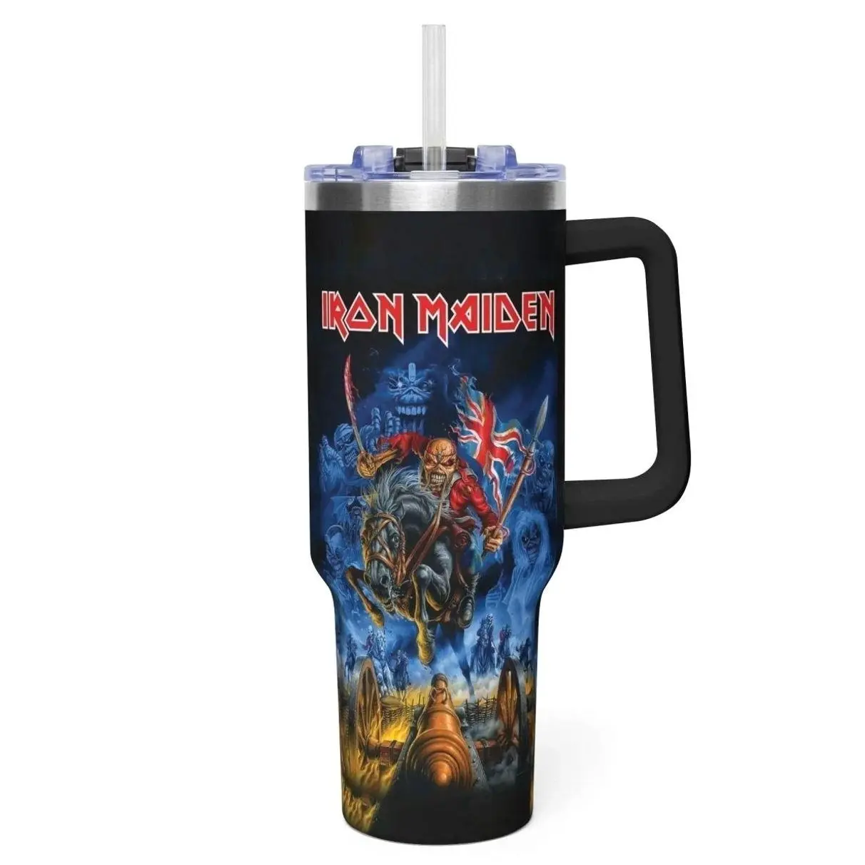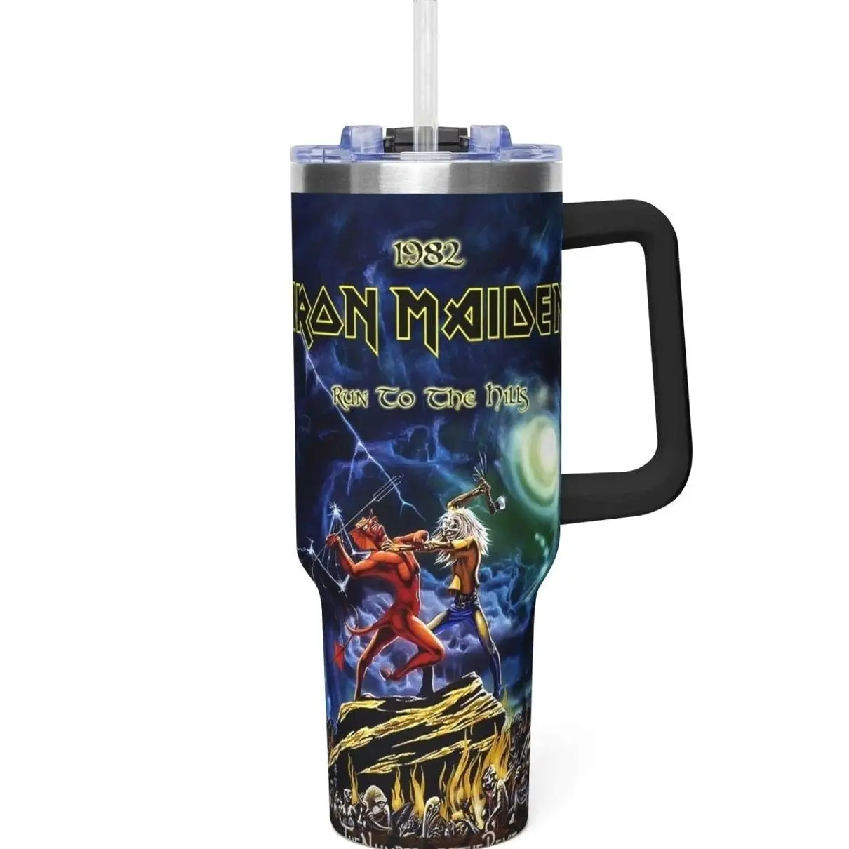 Iron Maiden 40oz Tumbler With Handle – Insulated Stainless Steel Travel Mug, Heavy Metal Fan Gift