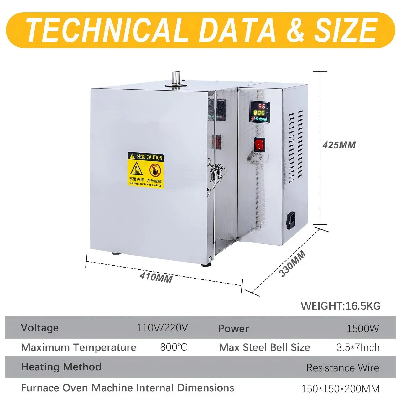 ·1500W Heating System: Rapidly heats up to 800℃ for efficient metal casting and enameling.