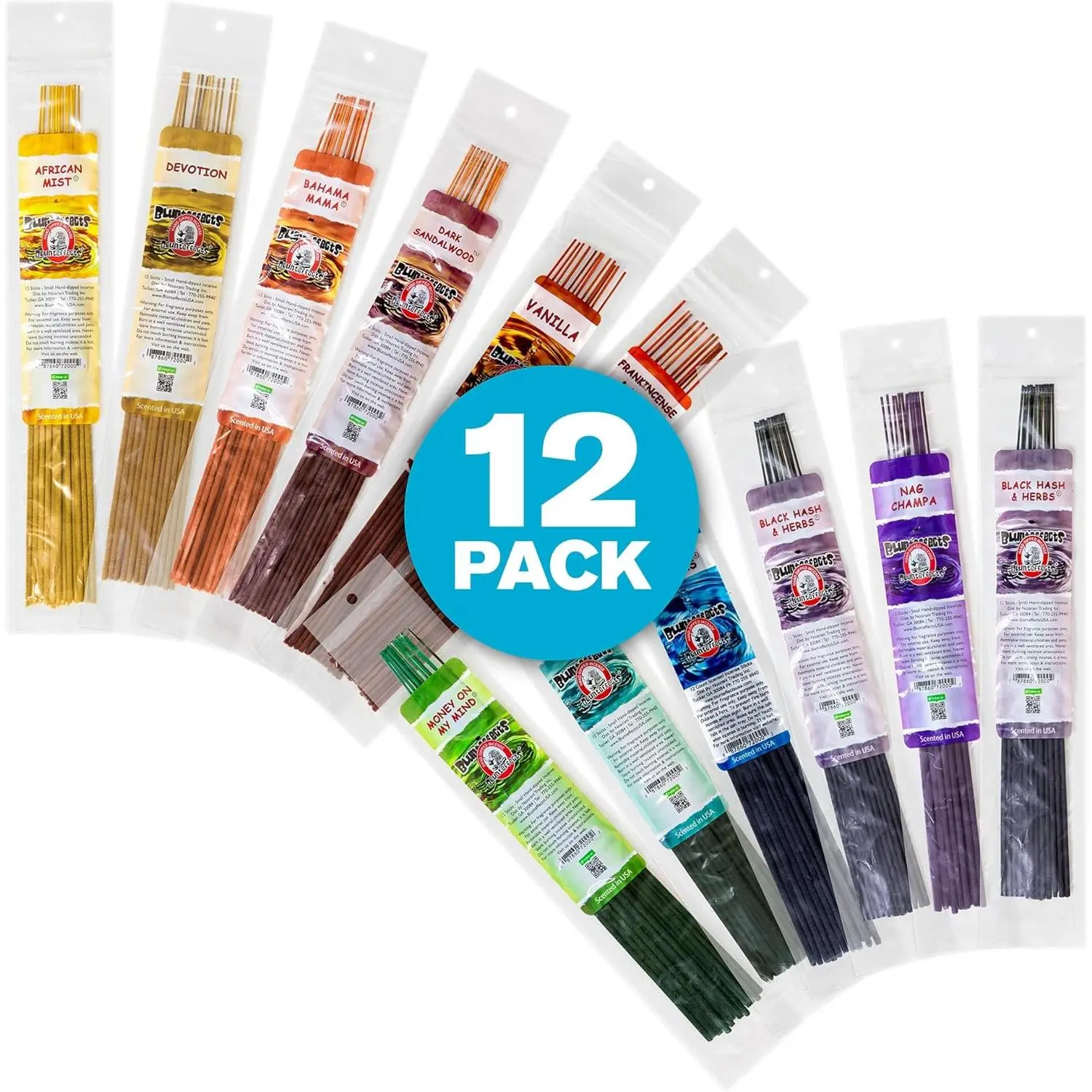 Hand-Dipped Incense Sticks - Premium 144-Pack Variety Set, 12 Different Scents, 11" Long, USA-Made Aromatherapy with Long Burn Time (12 Pack, 144 Total Sti