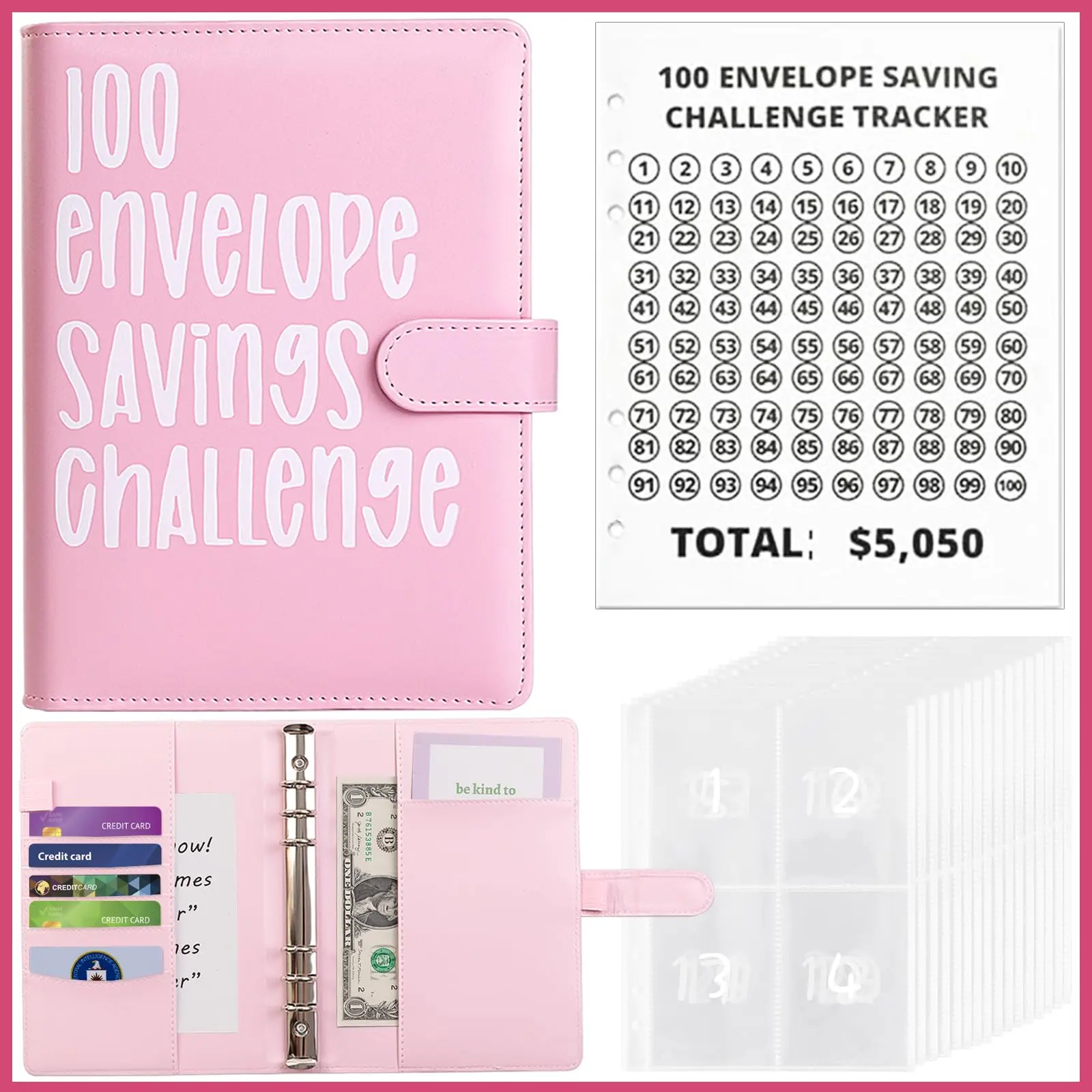 [Money Saving Binder Kit]: Includes 1pc A5 PU leather binder, 25pcs 6-hole cash envelopes pre-printed with 1-100, and 6pcs challenge tracker sheets of $5,050, $10,000, $500.Our savings book will help you manage your finances effectively and develop a habit of saving.
