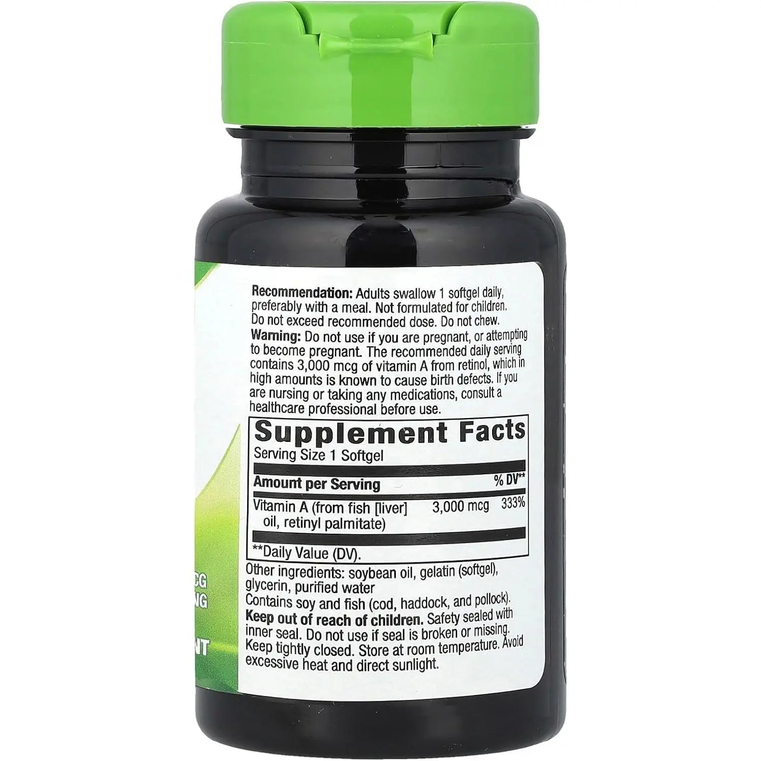 Discover Nature's Way Vitamin A, offering 3,000 mcg per serving. This high potency formula supports healthy eye function and immune health. Each pack contains 100 softgels, with packaging that may vary. Ideal for those seeking essential nutrients for eye and immune support.
