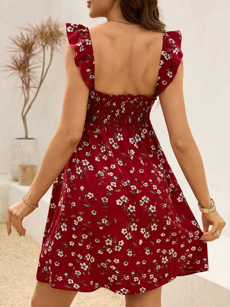 Tanming Women's Floral Dress Low-Cut Square Neck Spaghetti Strap Tie Bodycorn 90s Y2k Sun Dresses Springfresh Casual Wear Women's Slip Summer Dress with Adjustable Straps & Elastic Neckline