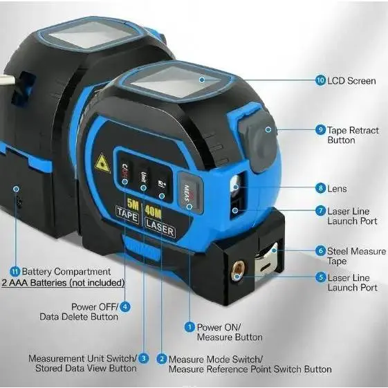 2 in 1 Digital Laser 5m Tape Measure with LCD Display, Self-Locking Device, 40m, 50m, 60m Measuring Options, Work Equipment for Men