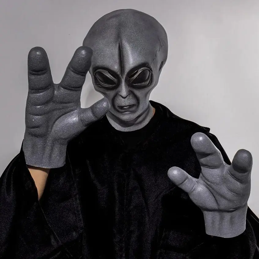 51 Area UFO Alien Mask + Gloves – Full Extraterrestrial Transformation!