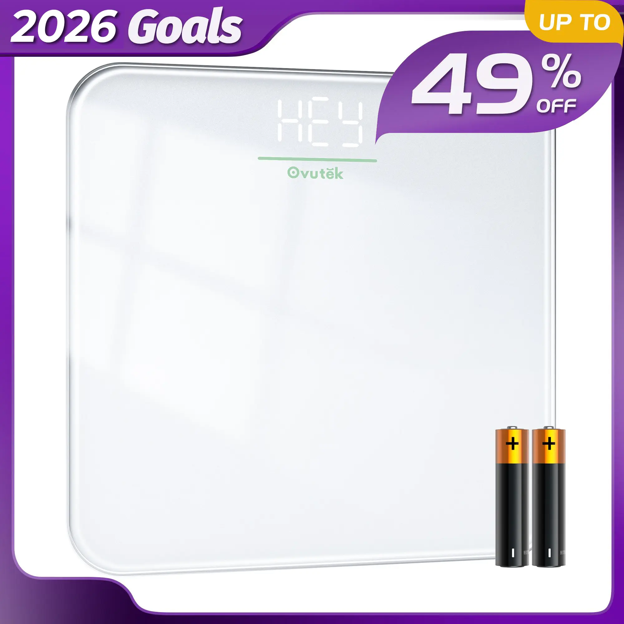 OVUTEK Bathroom Scale for Body Weight, Highly Accurate Digital Weighing Machine for People, Upgraded Batteries Included, Compact Size, LED Display, High Standards Sturdy Tempered Glass, 400lb, White