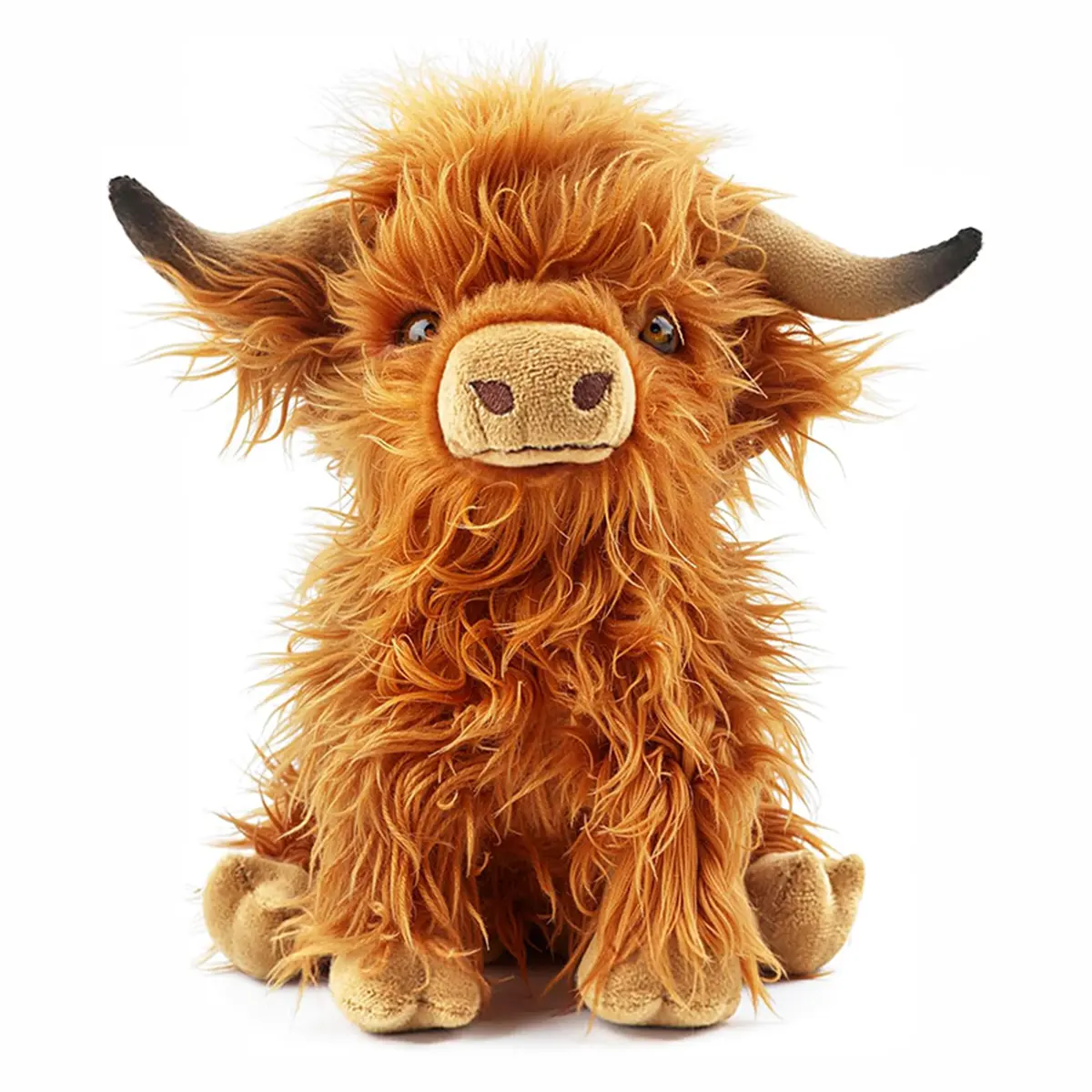 Adorable Scottish Highland Bull Plush Toy: Inspired by the iconic Scottish Highland bull, this plush features a body covered in long, shaggy fur and is stuffed with soft cotton filling, offering an incredibly smooth and gentle touch. As a charming cow-themed toy, it is perfect for both boys and girls to cuddle and play with—a beloved companion for any child.