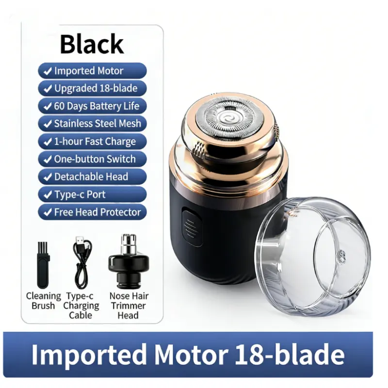 ✨ Compact and Convenient: This Mini Electric Shaver is a portable automatic razor designed for men. Perfect for home, car, or travel, it fits easily in your pocket. The sleek black design makes it a stylish accessory. No more bulky shaving tools!