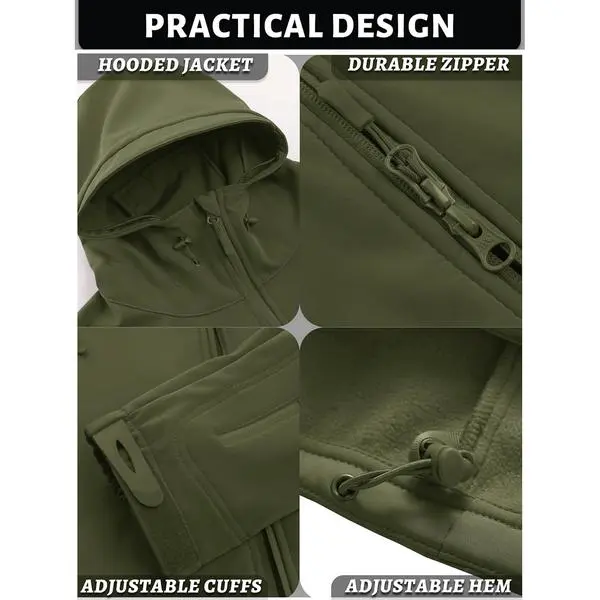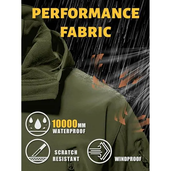 The jacket features a polyester outershell and a soft fleece lining. The fleece is warm, lightweight, and breathable, ensuring comfort. The abrasion-resistant softshell fabric protects against wind, keeping you warm. The smooth fabric allows for flexibility in outdoor activities. Stay cozy and protected in any weather.