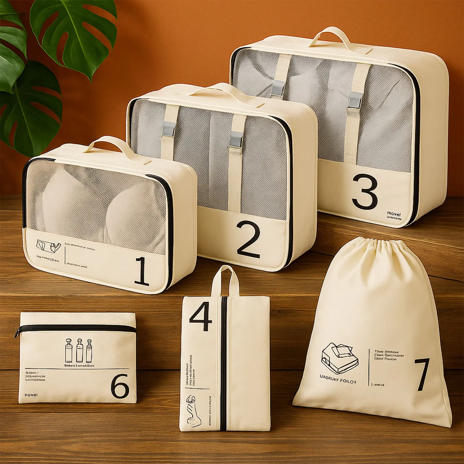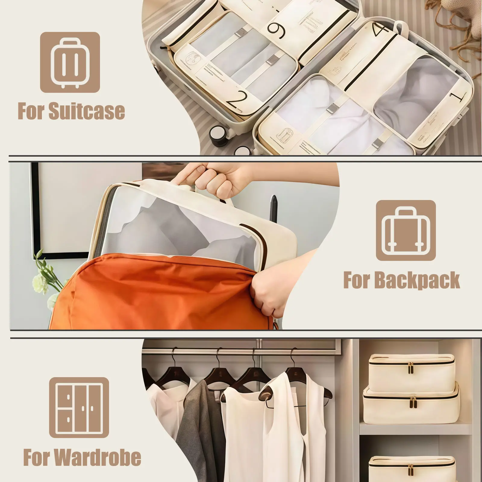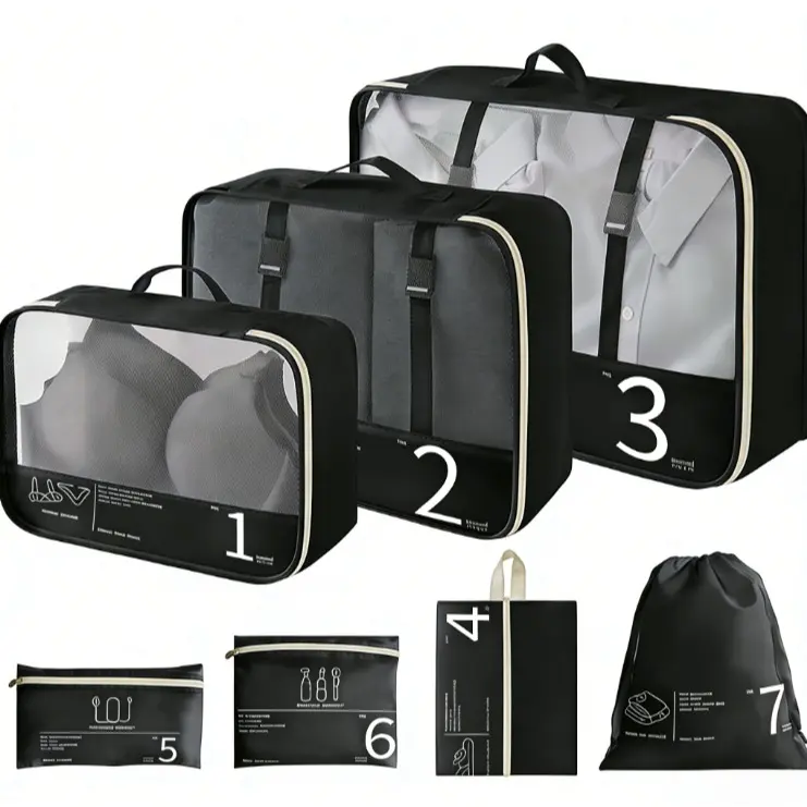 [Instant Luggage Organization] Seven varied sizes sort clothes by type, ending chaotic digging in suitcases, perfect for families managing multiple outfits during week-long vacation trips efficiently.