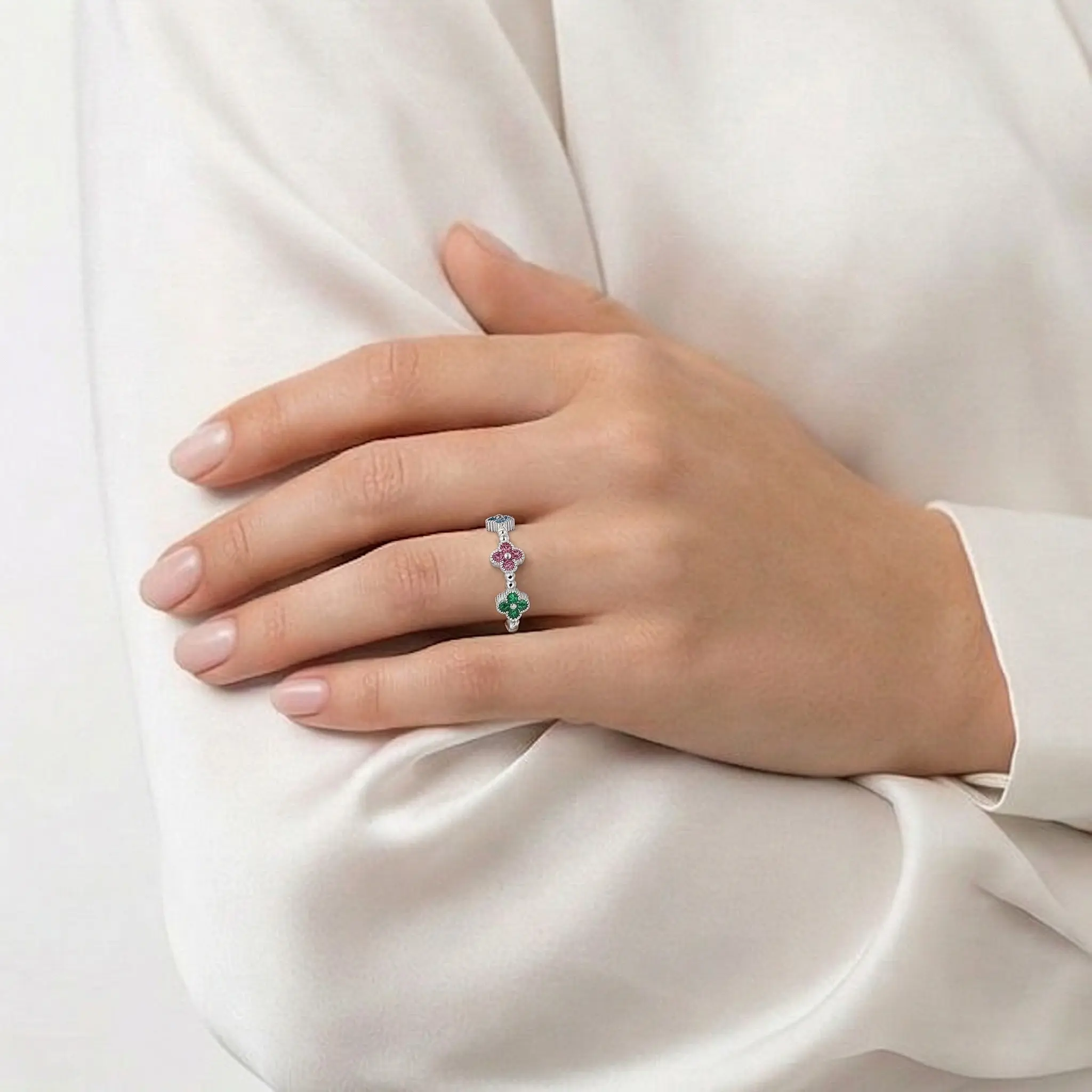 S925 Real Clover Ring Adjustable in Fine Silver 925