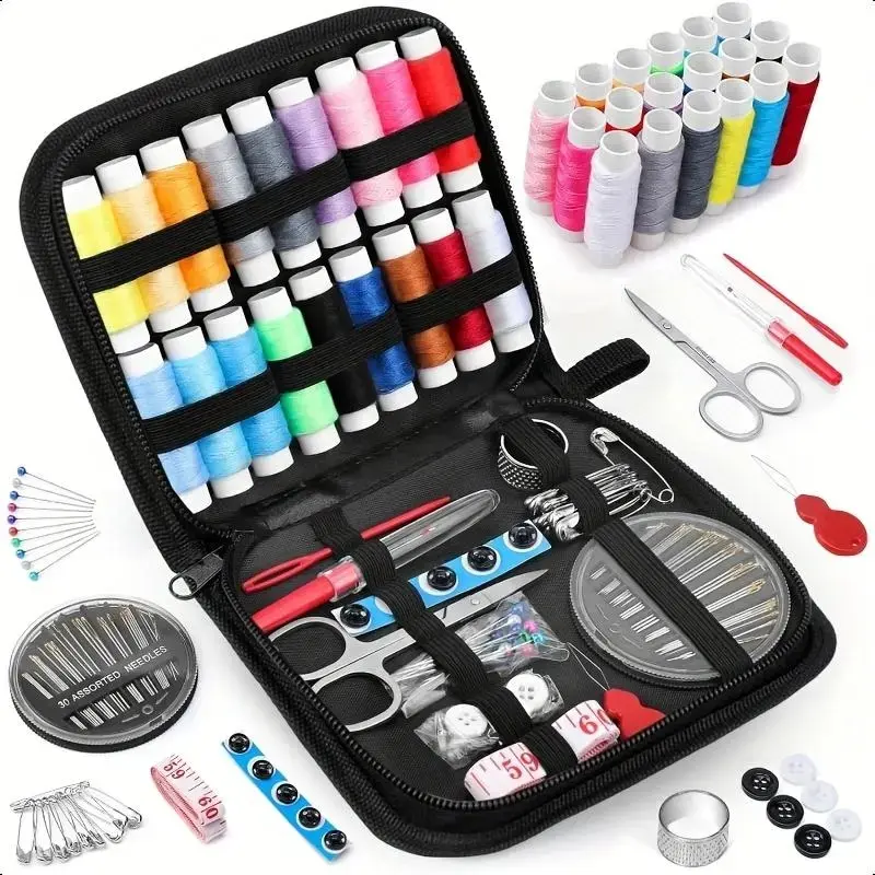 This 99-piece sewing kit includes everything you need for quick fixes and daily sewing tasks. It comes with needles, colorful threads, scissors, measuring tape, and essential accessories, making it perfect for beginners and professionals alike.