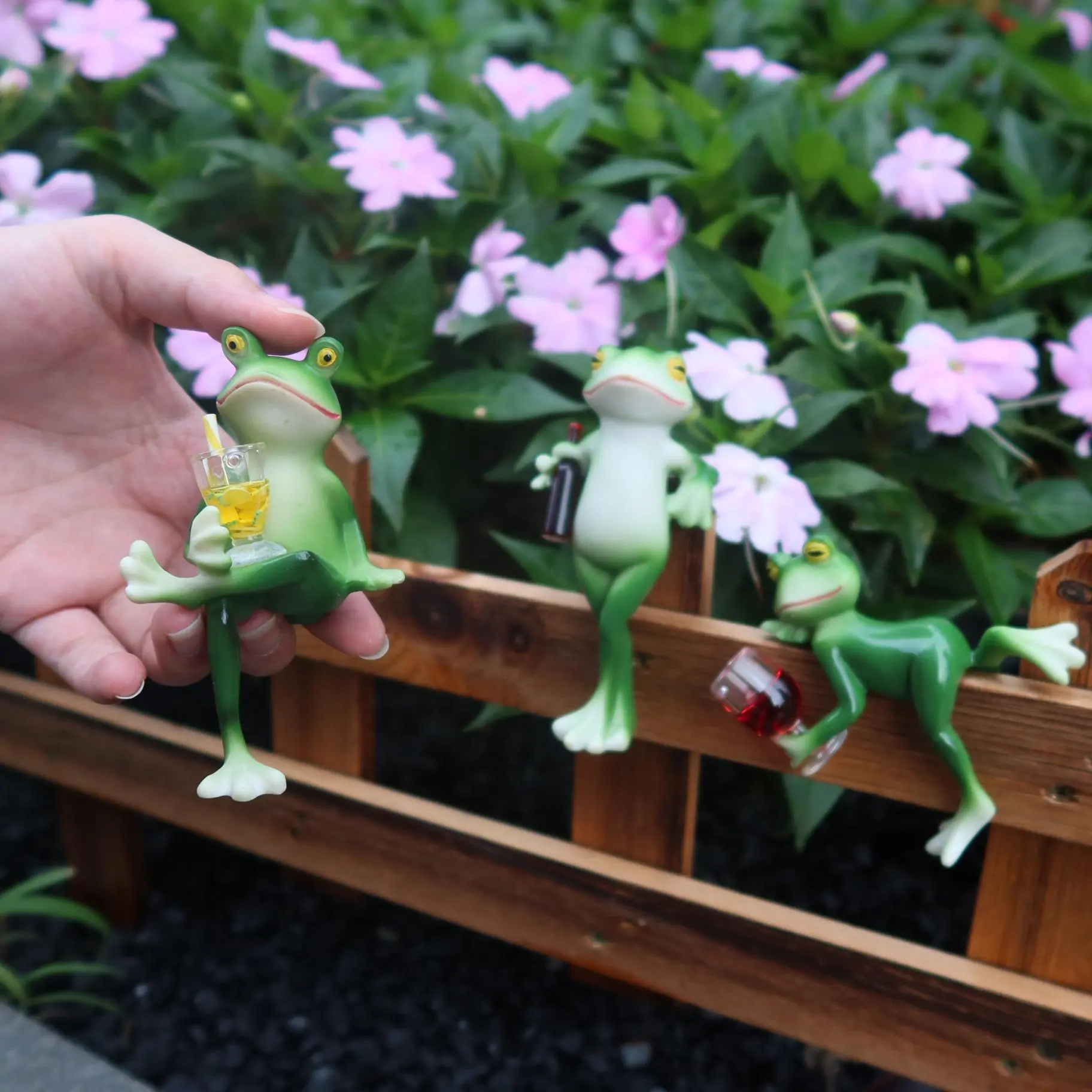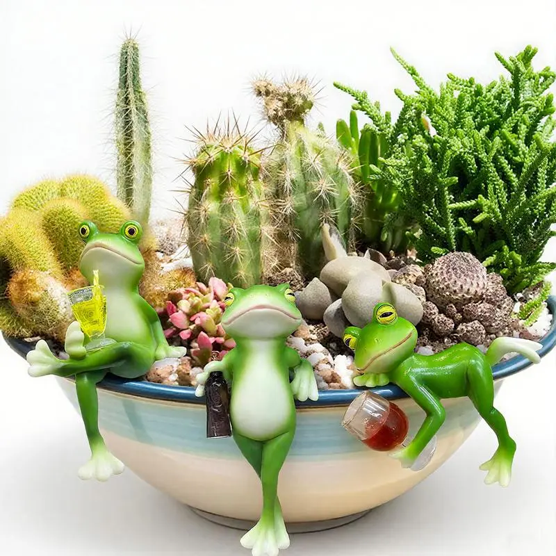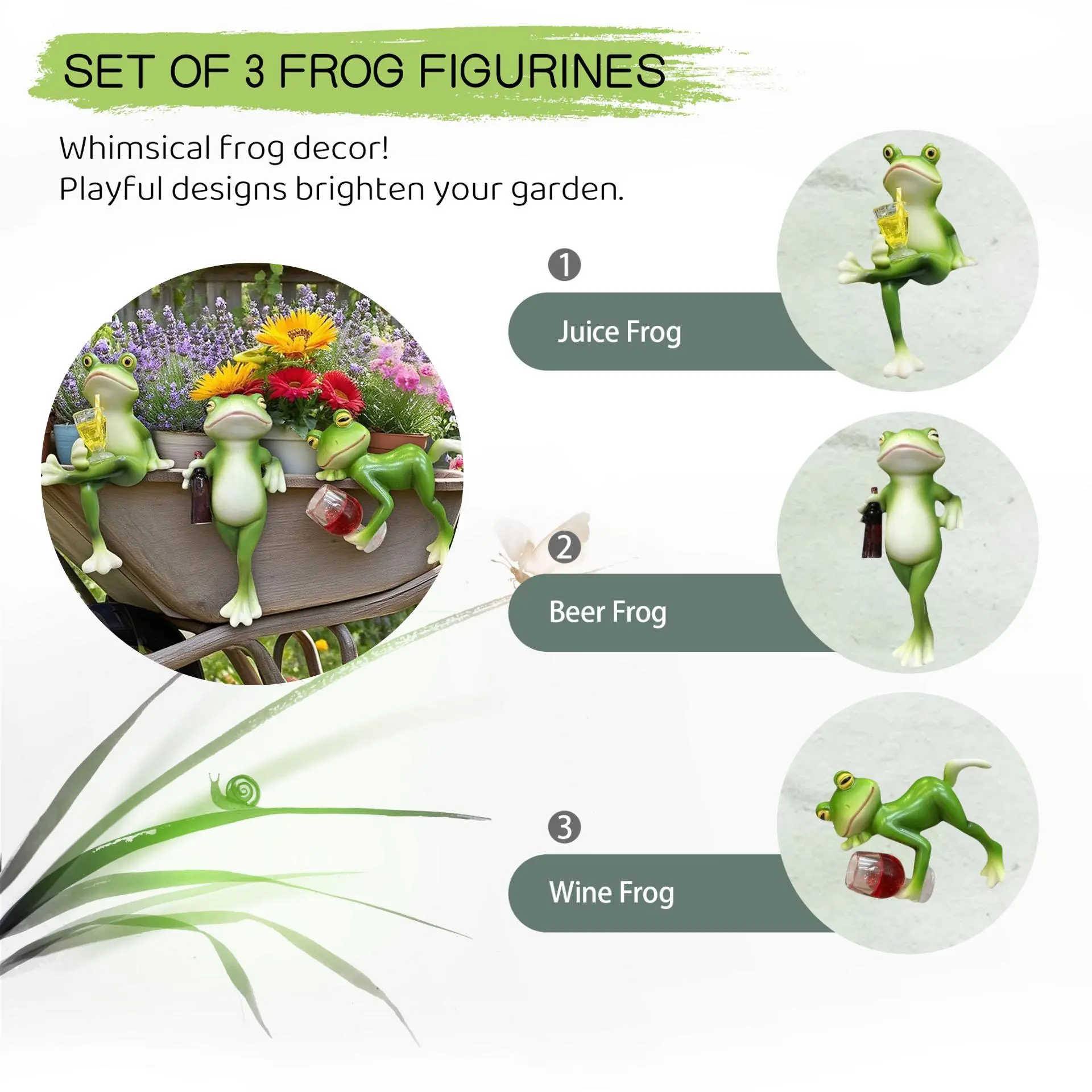 This set includes three adorable frog figurines, perfect for enhancing your garden decor. They are suitable for both indoor and outdoor use, making them a versatile addition to your home. The resin material ensures they are weather-resistant, maintaining their appearance over time. Ideal for nature enthusiasts, these figurines are a delightful addition to any space.