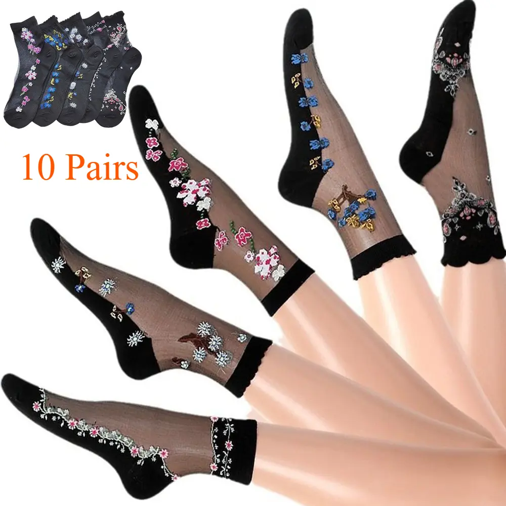 10pairs Women’s Summer Thin Sheer Glass Silk Mid Calf spring sock comfort