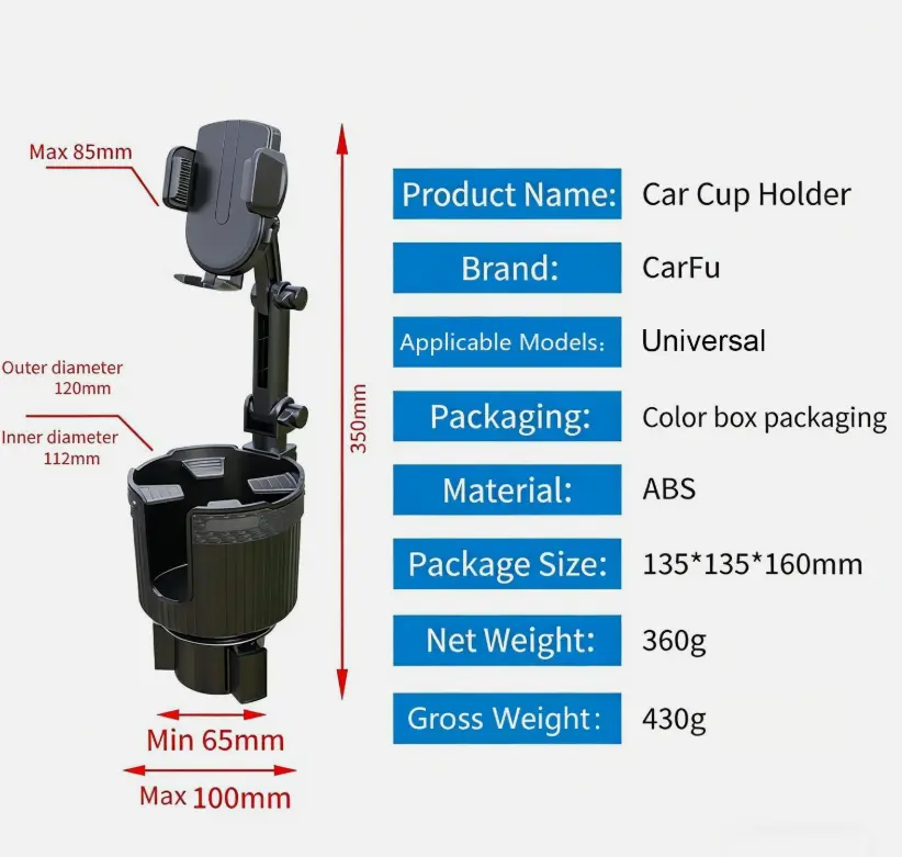 1. 2-in-1 Space-Saving Design: Declutter Your Car Interior Combine an extra-large capacity cup holder with an adjustable phone mount into one compact unit, eliminating messy, scattered cup holders and mounts that waste precious car space. Keep drinks (fits large bottles, mugs, glass cups) and your phone within arm’s reach while driving—perfect for drivers who value a neat cabin, no more fumbling between cup holders and the dashboard.
