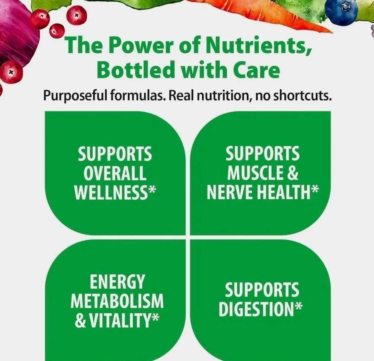 ·Real Food Nutrients: Enjoy the benefits of real food nutrients in every caplet.
