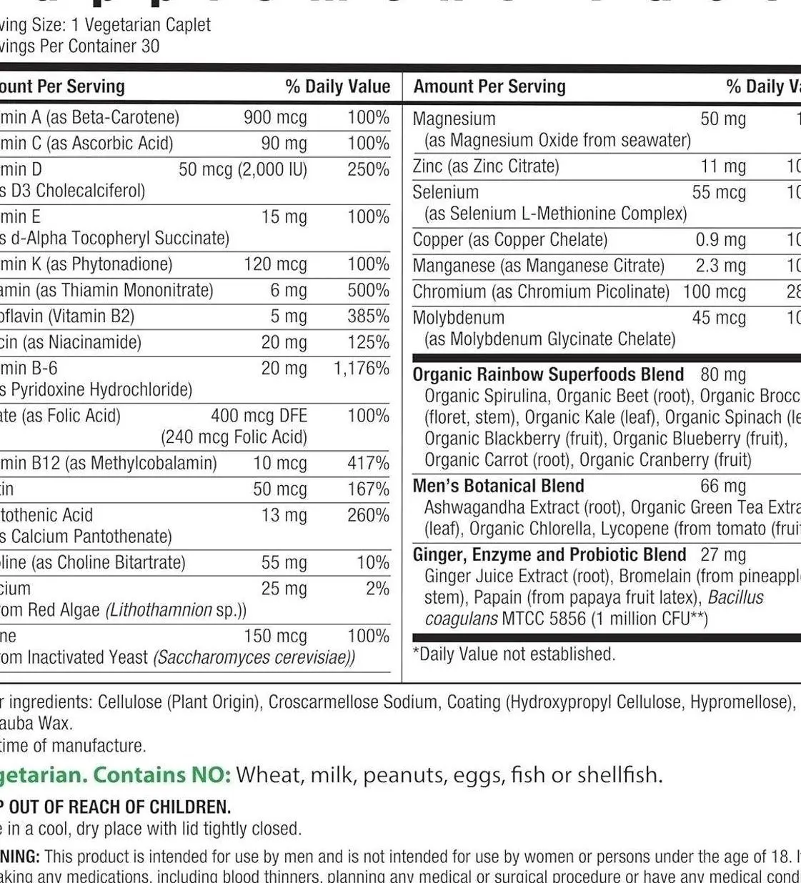 ·Multivitamin: A comprehensive multivitamin designed for men.
