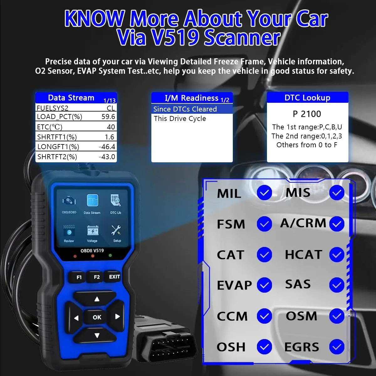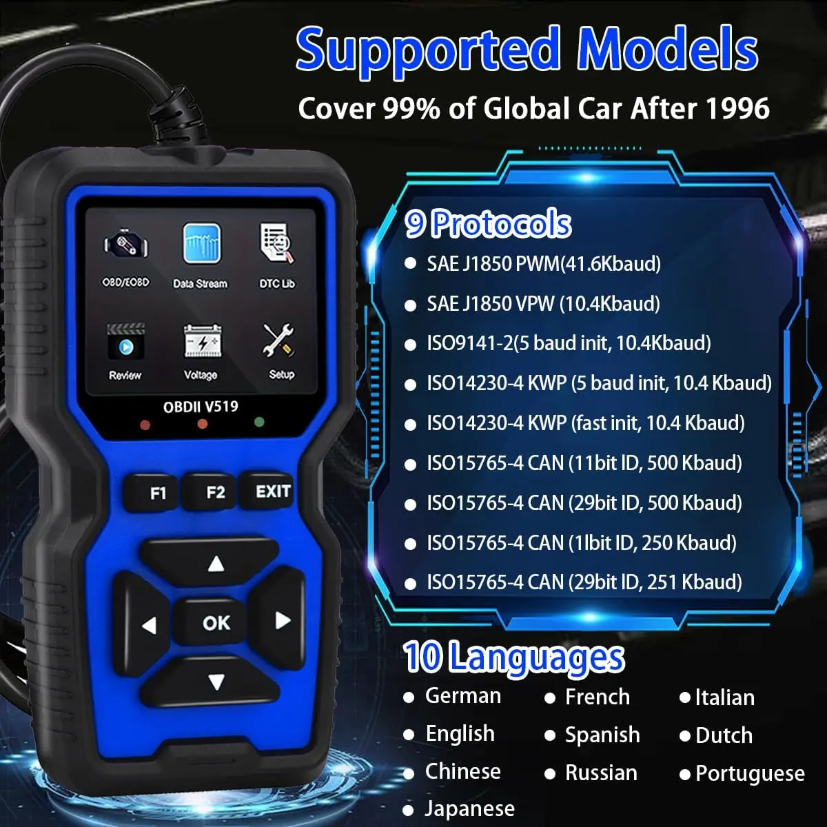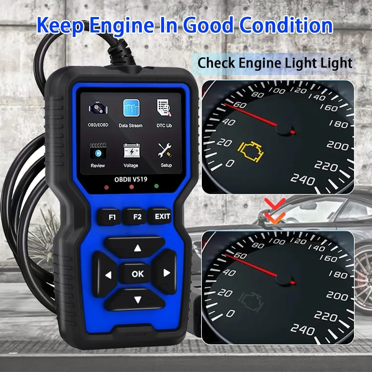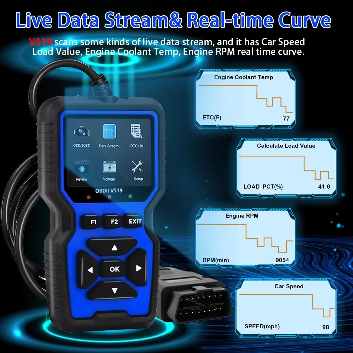 ·【Professional Diagnosis】:The V519 obd2 scanner is a practical tool that can diagnose and clear car engine failures, read real-time battery voltage and vehicle information, helping you determine if your car needs repair and saving you time and money.