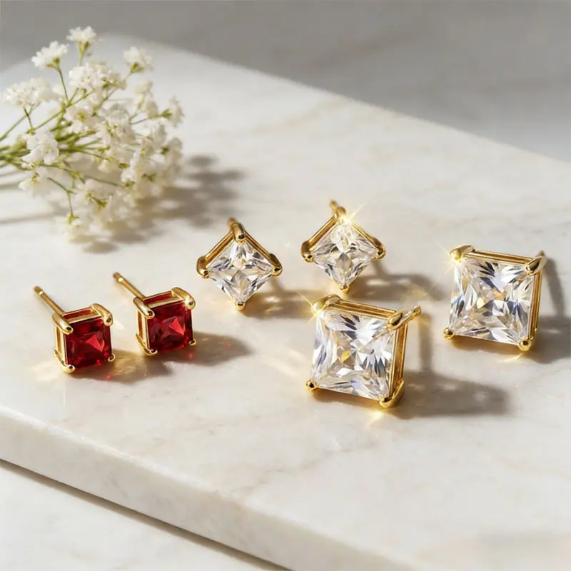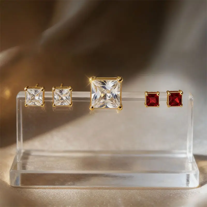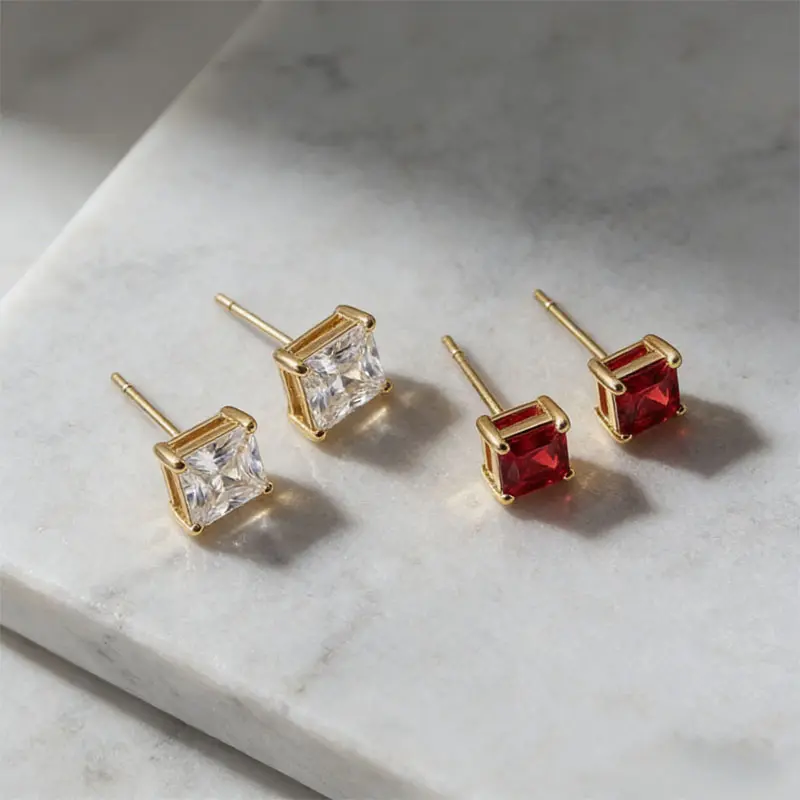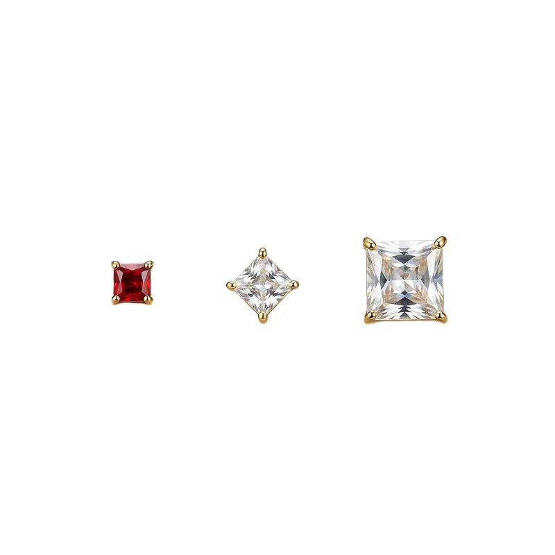 Stone Detail: Brilliant square-cut clear & red zircon stones set in gold for a luxurious, eye-catching sparkle that catches the light beautifully
