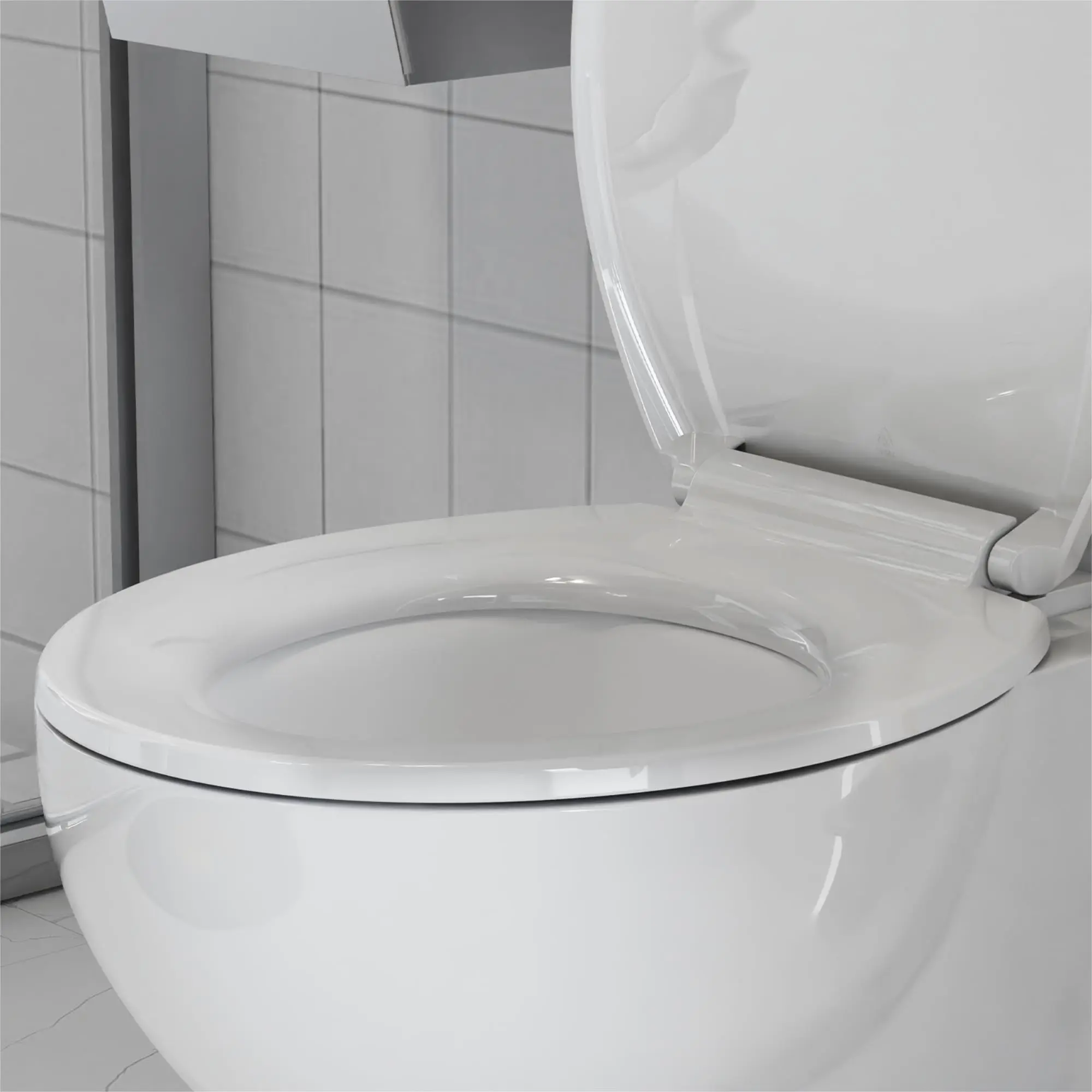 Features a gentle silent‑closing hinge that prevents loud slamming and finger pinching, ensuring a peaceful bathroom environment and extending product lifespan.