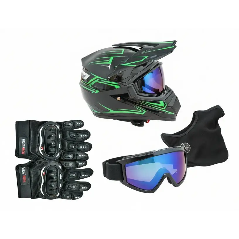 ️[ Matte Black Trail Bike four-piece Set ] Adult DOT Certified Trail Bike helmet + goggles + gloves + mask set