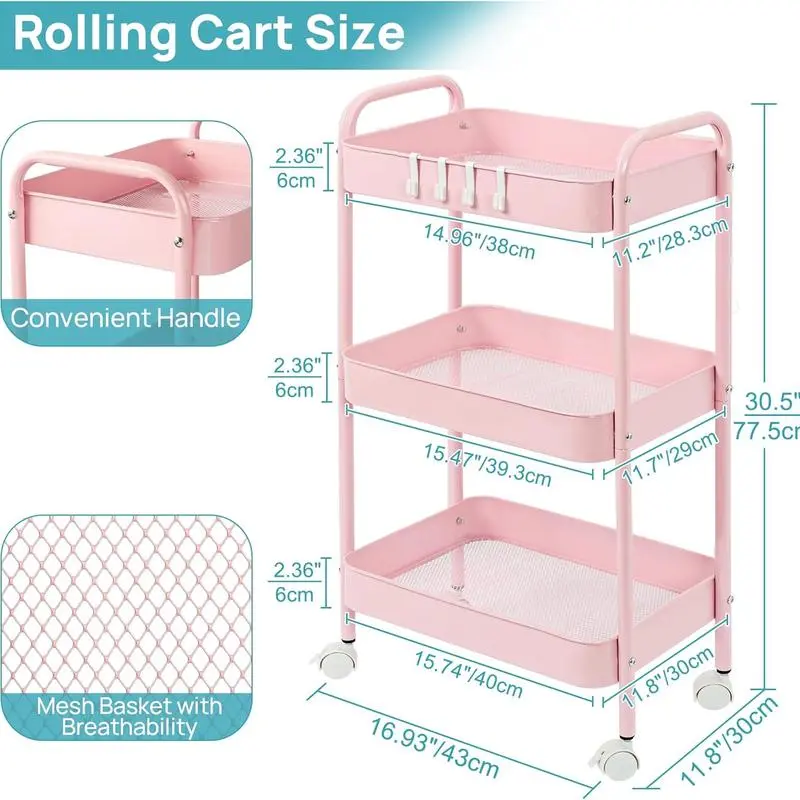 ·Suitable for various places, this cart can store small items, daily necessities, and groceries. It is perfect for kitchens, offices, bathrooms, and bedrooms.