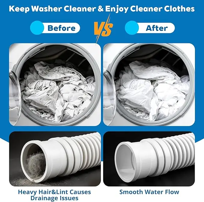 ·Multi-Functional Pet Hair Laundry Catcher More than a hair remover, this pet hair laundry catcher reduces scale, rust, and lime buildup in washers and pipes, while eliminating dust and odors. It’s a dual-duty tool that keeps laundry clean and your appliance running smoothly