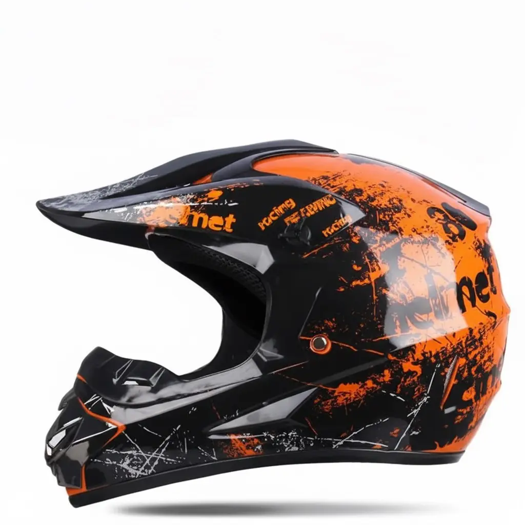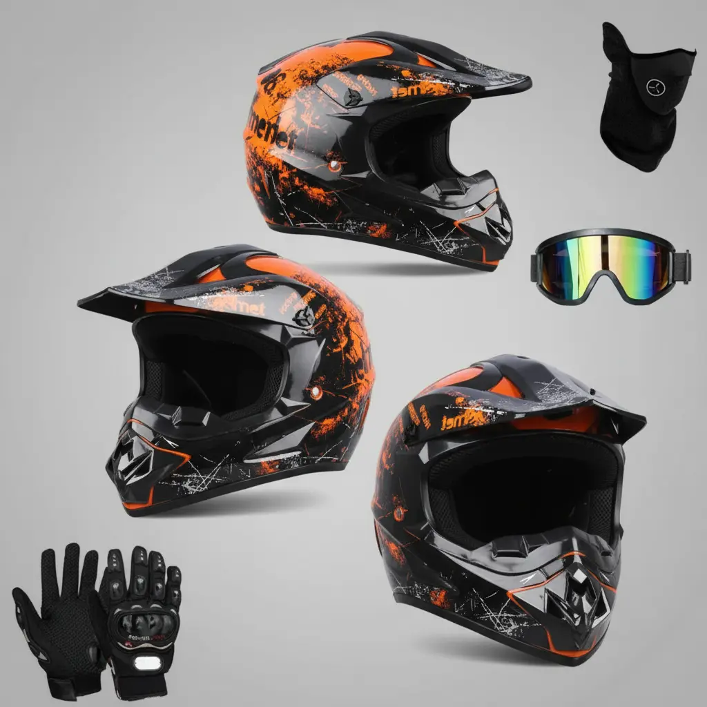 Youth Dirt Bike Helmet with Accessories – Off-Road Motocross ATV Helmet Kit, Shark Graffiti Design, Includes Goggles Gloves Face Mask, Safety Gear for Kids DH AM Downhill Mountain Bike Racing