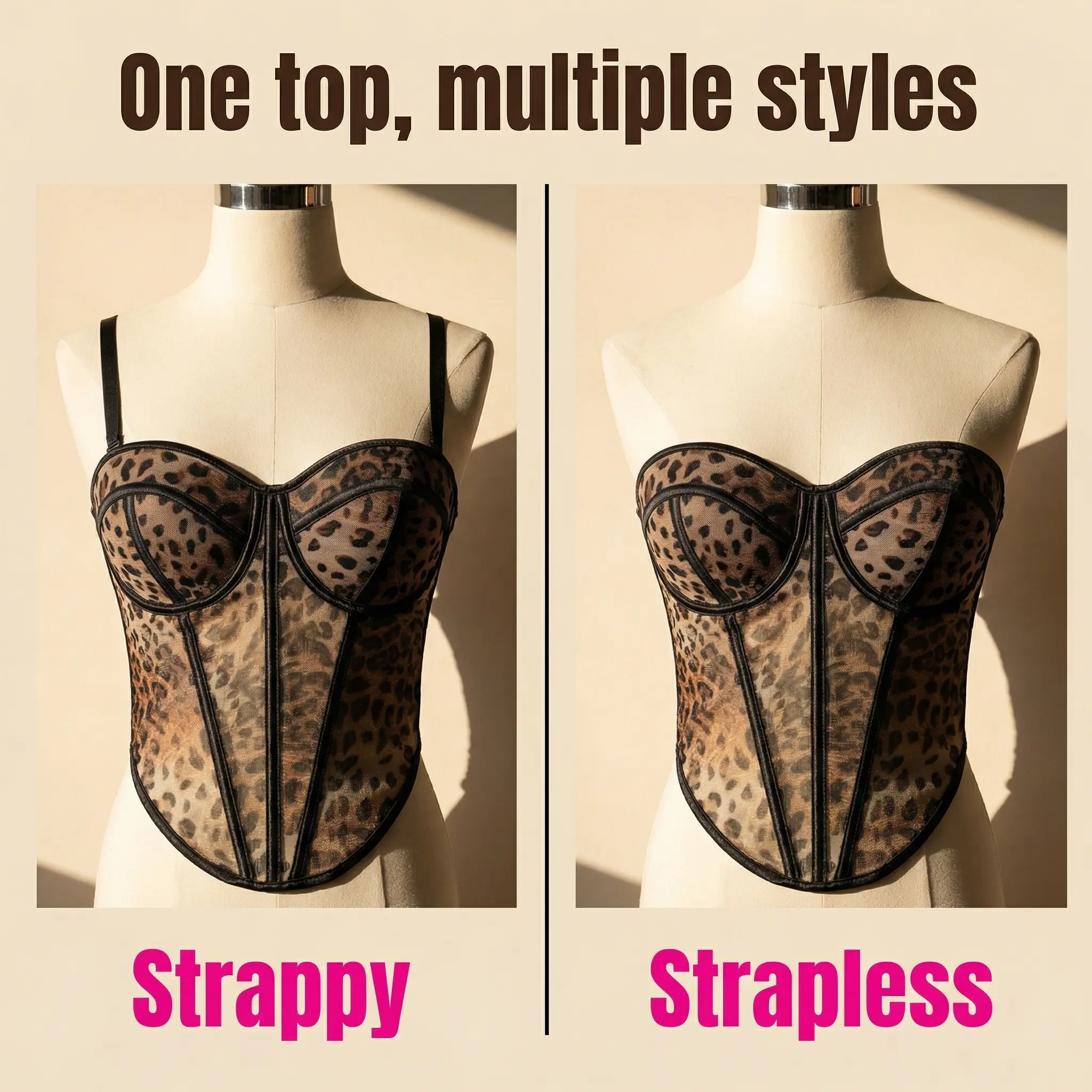 ·Snatch Your Shape Instantly-Leopard Mesh Corset Bustier Top