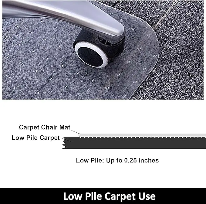 Elevate your space with this 48''×36'' PVC Chair Mat. Perfect for low pile carpets, it offers a heavy-duty grip and anti-slip features. The lip design ensures stability, preventing damage to your carpet. Ideal for both office and home use, it won't crack and is easy to clean.
