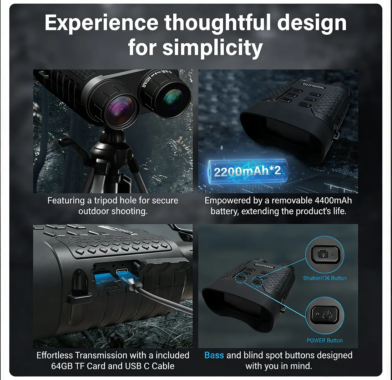 ·Concealed in the Darkness: The 5-level adjustable screen brightness and completely silent button settings, ensuring you to move freely in the dark without disturbing animals. The blind spot settings on the power and photograph buttons let you locate them effortlessly by touch.Embark on your hunting adventure now.