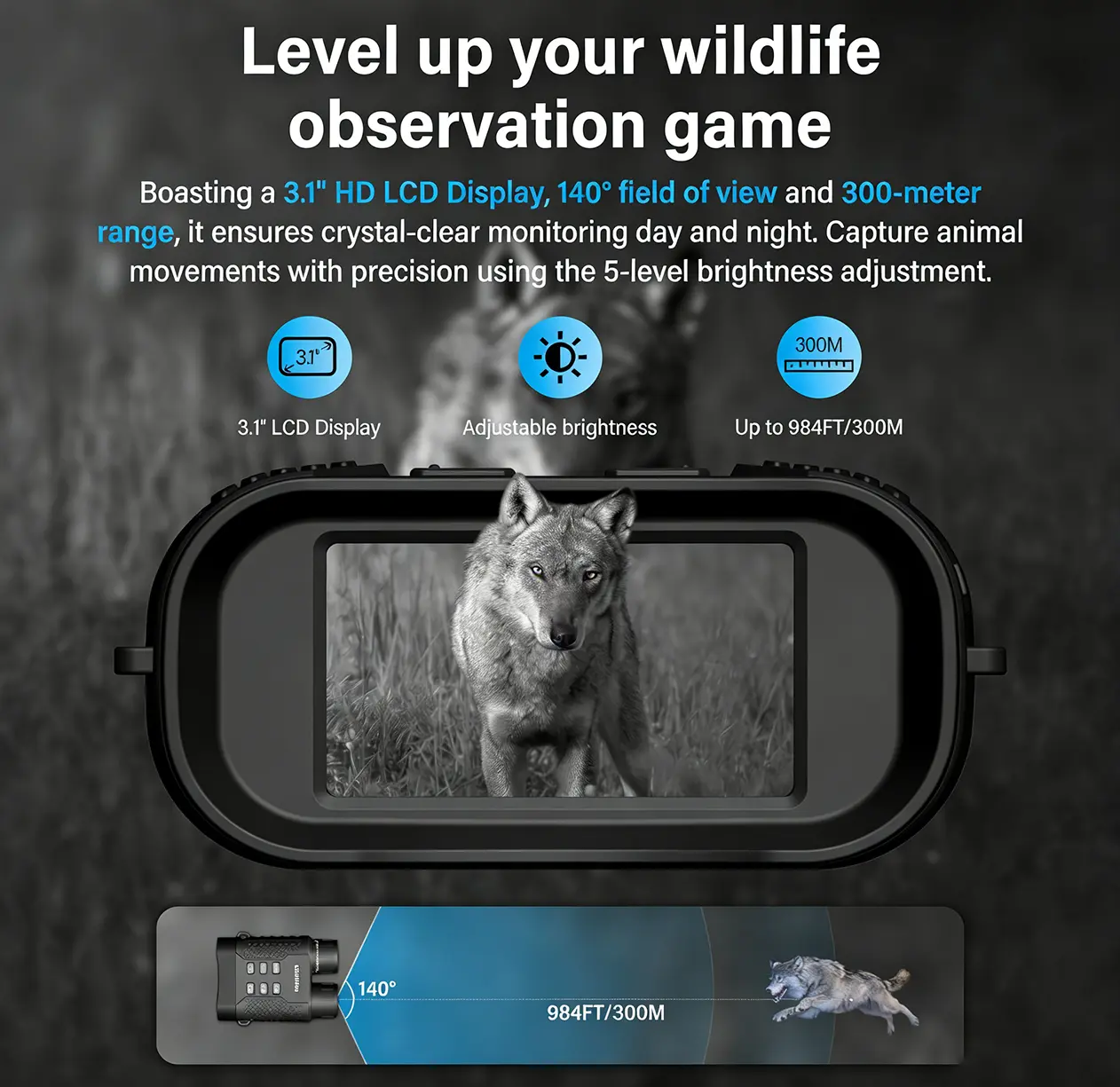 ·Dual-Zoom Technology:Capture finer details with 5x optical zoom. Turning the zoom knob reveals every subtle movement of animals. Amplify the image with 5x digital zoom, and the 25mm objective lens offers a wide viewing angle of up to 140°, enabling precise focus on your hunting game.