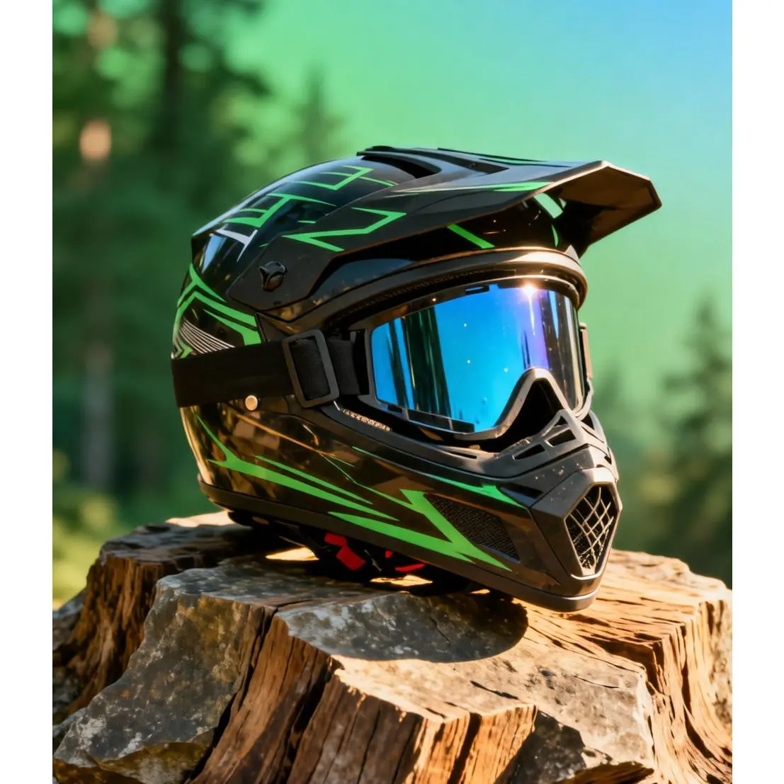 Off-road Motorbike Full Face Helmet For Adult Dirt Bike UTV Off-Road Helmet Goggles Gloves And Face Mask Matte Black DOT