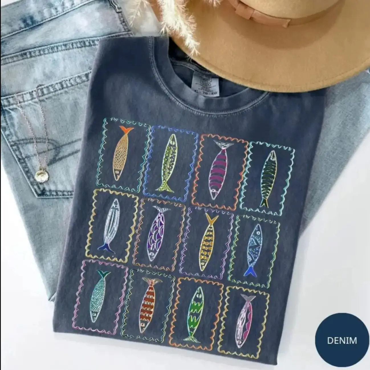 Comfort Colors Sardines Tinned Fish T-Shirt, Funny Vintage Canned Fish Tee, Retro Seafood Graphic Shirt, Comfort Colors Graphic Tee, Casual Outfit, Vintage Wash Shirt, Oversized Women’s Outfit, Apr 8