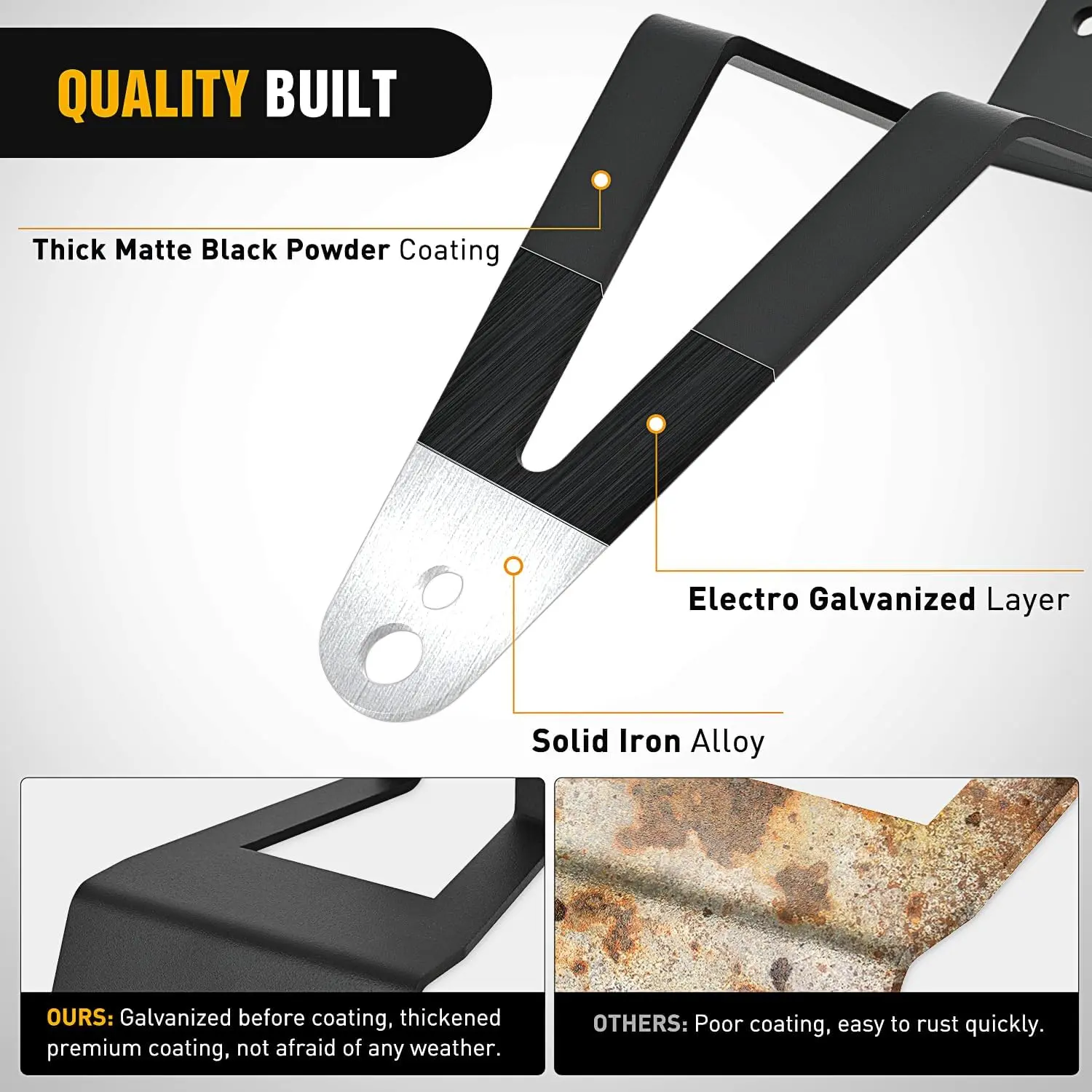 ·Excellent quality: Made of solid iron alloy, durable, CNC formed and pressed, precise size, smooth edges, electrophoresis process, covered with thickened black matte powder, durable and non-fading and not easy to scratch for long service life