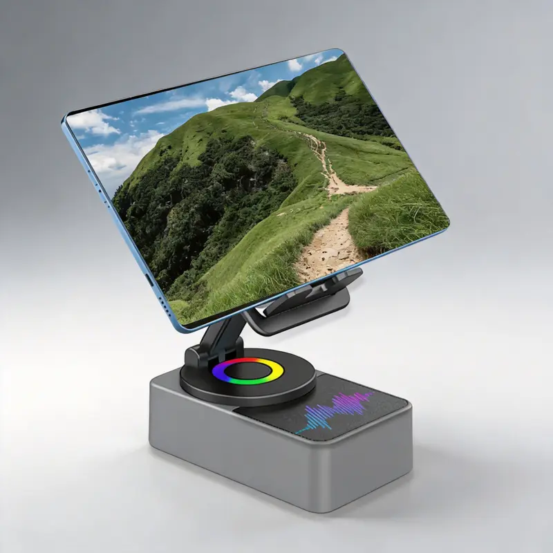 - **Innovative 3‑in‑1 Design** – Integrates a phone holder, high‑quality speaker, and bright LED light into one compact unit.Saves space and reduces clutter for home, office, or travel.