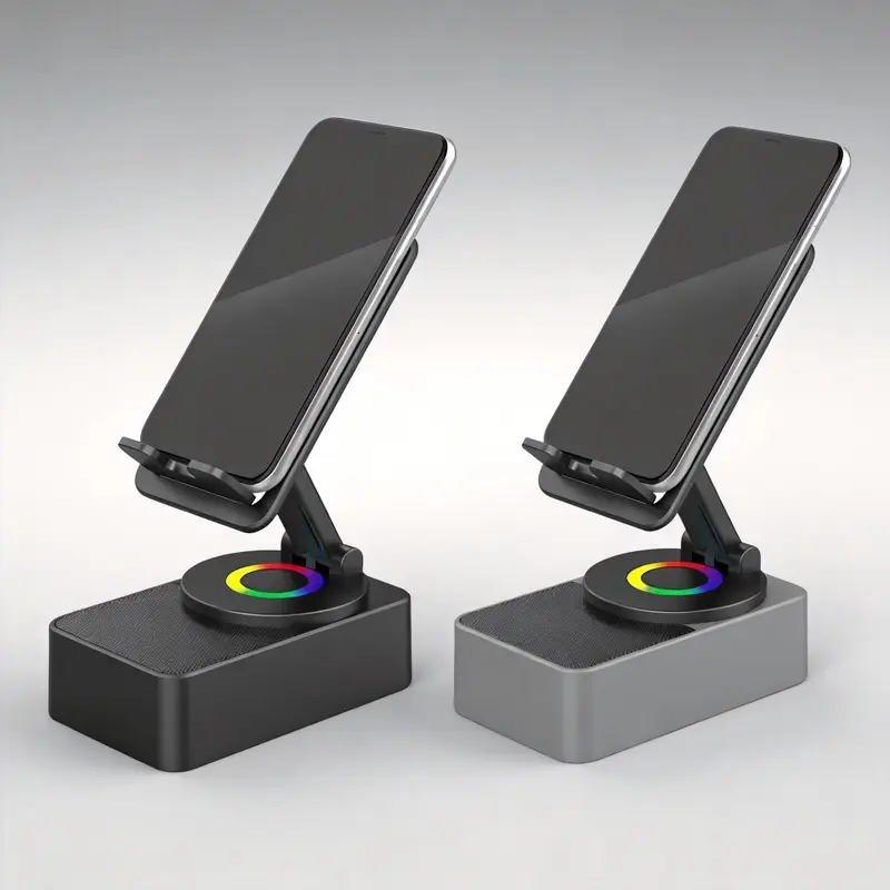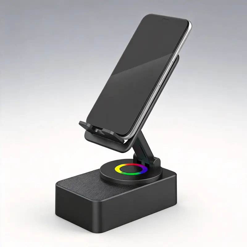**Phone Stand with Wireless Bluetooth Speaker & LED Base| 3-in-1 Holder for Home & Outdoor Use**