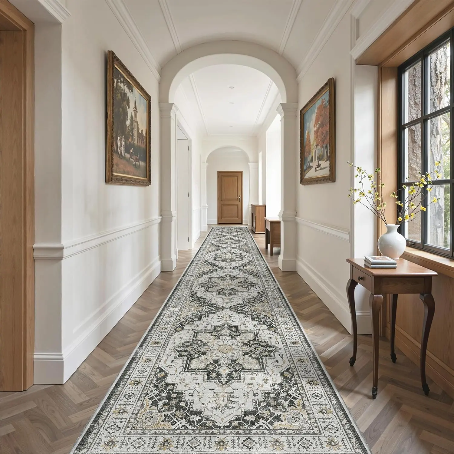 Anti Slip Backing Rug: Our indoor entryway rug is designed with non skid backing,, which can firmly grip the ground. It is suitable for placing in high-traffic areas without worrying about slipping. Also protects your floors from stains and scratches. Low pile design is ideal for any area in your home and will not obstruct doorways. Perfect for busy home with kids and pets. Easy To Maintain And Clean: This retro low-pile floor carpet can be vacuumed or used for daily cleaning with a broom and burlap to keep dust and debris out of the fibers, or a washing machine for deeper cleaning. This hallway floor mat features premium fiber locking technology that has been machine tested many times and proven to withstand frequent machine washes without warping, shedding, and without fading. Functional Runner Rug: 2x8 Rug Runner Liven Up Or Complement Your Decor And Fine Floors In The Foyer Or Entryway, Back Door, Living Room, Dining Room, Kitchen, In Front Of The Fireplace, Hallways, And Will Not Obstruct Doorways. The long runner for hallway is also ideal as a gift for your friends, parents, kids and family. Foldable Long Runner Rug:Foldable hallway runner rug make it easier to store away and save space for extra storage. Tips: Roll the rug in the opposite direction and lay it flat for a while. Creases typically flatten out within 1-2 weeks of unrolling. Fit Right in: This long runner rug is a very classic vintage yet modern style, which complements many different types of furniture. A delightful and stunning addition to your home. With a range of colours and styles available, find your perfect fit with to make every room a place you love to be.