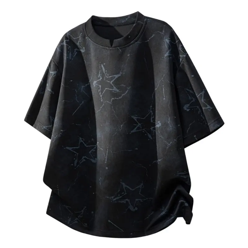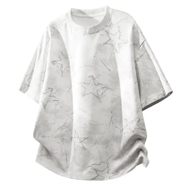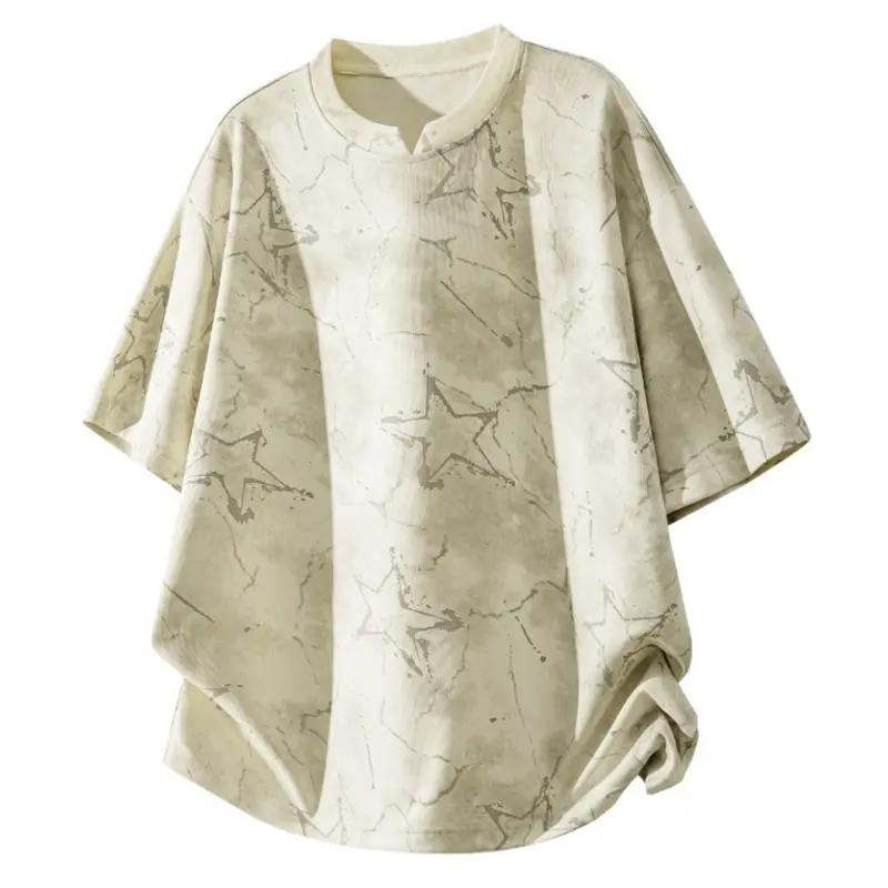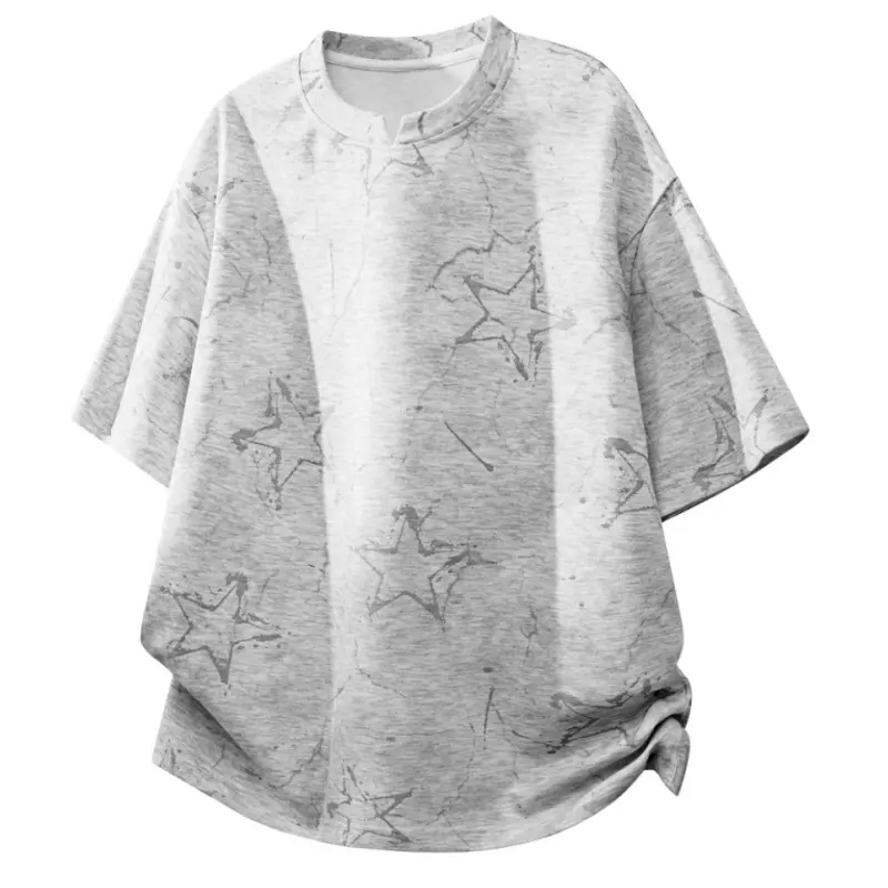 Men’s American tie-dye V-neck printed T-shirt with dropped shoulders and short sleeves; lightweight knit top for summer—breathable, trendy, versatile casual wear for everyday use and outdoor sports; Y2K style.