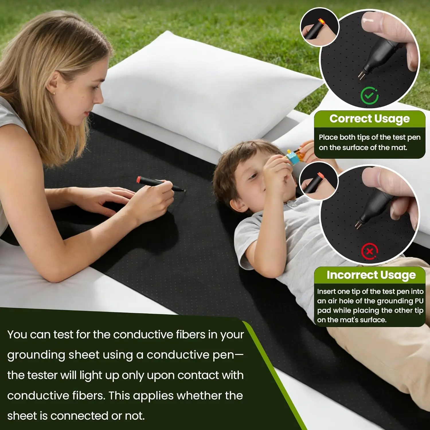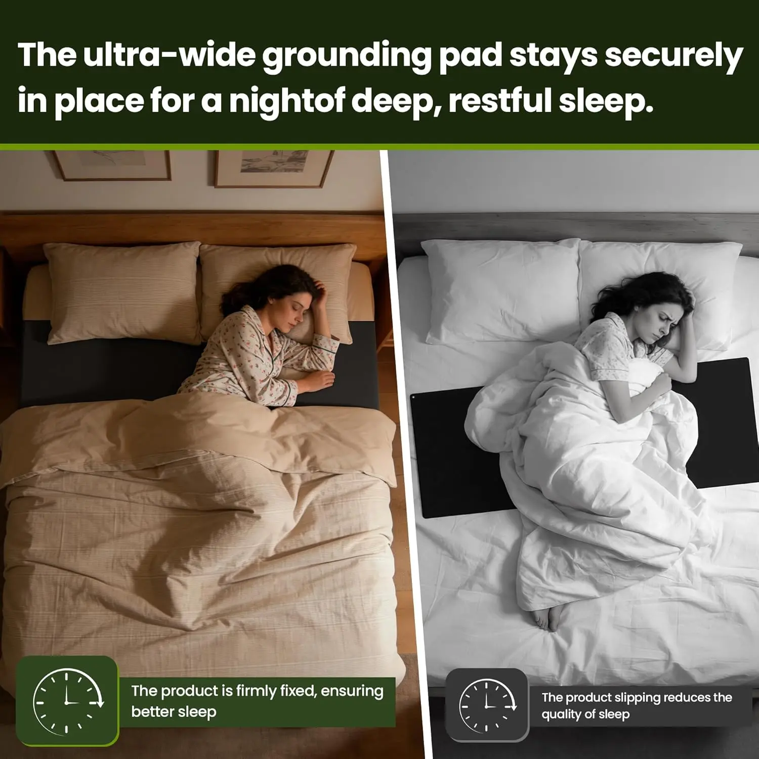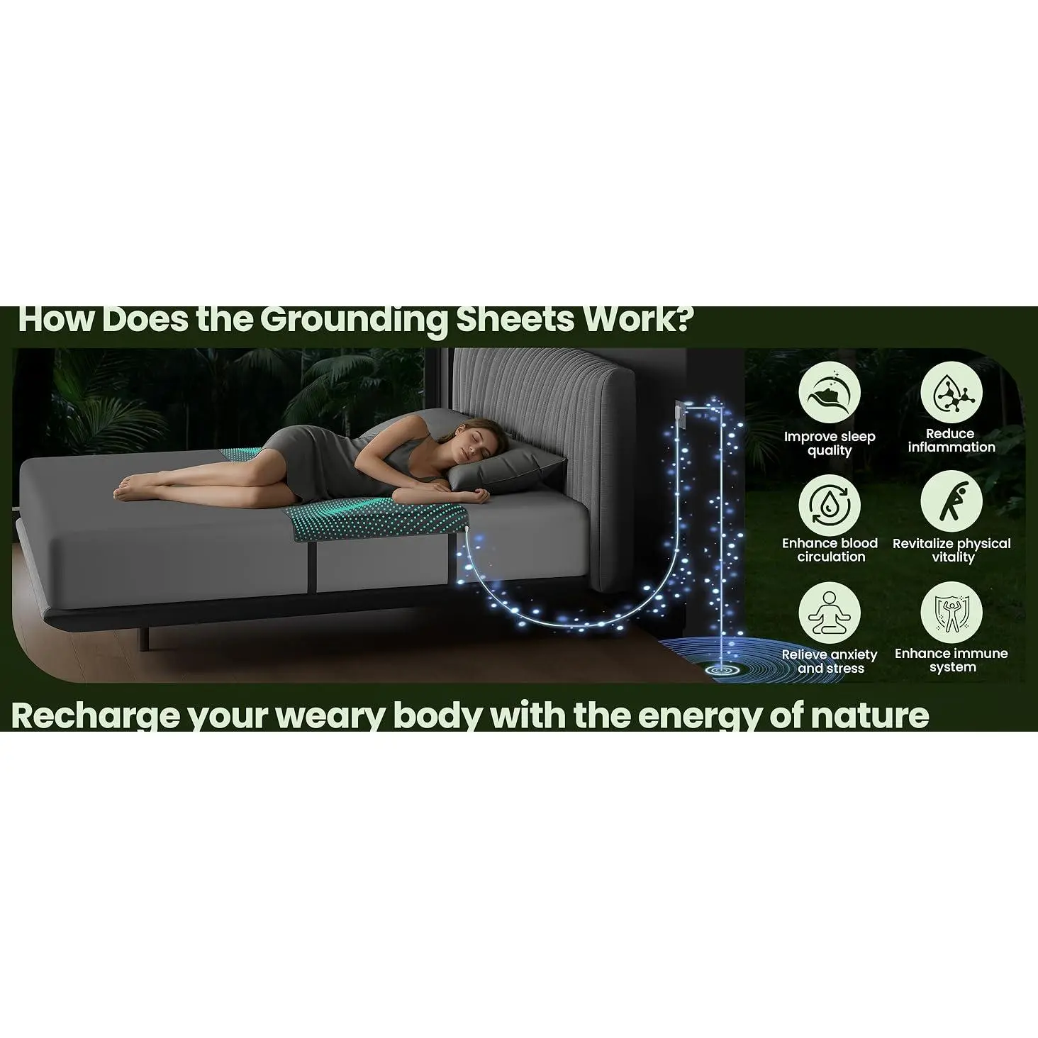 1.Premium Conductive Materials: Crafted from high-quality conductive carbon fiber and durable, skin-friendly PU leather, this grounding pads ensures excellent conductivity and long-lasting performance.grounding Mats (king :82" x 27" inch) has extra-wide design for enhanced stability and slip resistance.The perforated design offers enhanced breathability, while the soft, anti-slip surface provides comfort and stability for effective grounding throughout use2.Support Restful Sleep & Ease Discomfort: By facilitating a connection to the Earth's natural electrons, the mat helps balance the body's electrical charge.Many users find this process supports deeper, more restful sleep and contributes to a feeling of overall physical relaxation and well-being after consistent use3.Simple Setup: Enjoy grounding anywhere: simply place the mat on your bed or under your desk, secure it with the adjustable straps, and connect the included cord to the mat's snap and a grounded wall outlet.Its lightweight, portable design allows you to experience the benefits during work, rest, or relaxation4.Ideal User & Realistic Expectations: This mat is perfect for desk workers, office human, or wellness enthusiasts looking to integrate grounding into their daily routine.For superior results, consistent use over several days is recommended.Please note: it may not be ideal for those who sleep very hot and prefer 100% breathable fabrics like cotton, or for users expecting an immediate transformation5.Complete Kit & Reliable Support: Your purchase product kit includes everything needed to begin: a high-quality grounding mat(grounding mat features grounding tabs on both sides.For use, simply connect the grounding cord to either one.This dual-tab design offers you flexible placement options.), a conductivity test pen, a durable grounding cord, and a detailed instruction manual.Our responsive customer service team, committed to ensuring your satisfactionKind Reminder:The test pen verifies the presence of conductive fibers in the product-not whether the ground wire is connected. Even with the wire unplugged, the pen's light will turn on, confirming that the mat contains genuine conductive fibers.