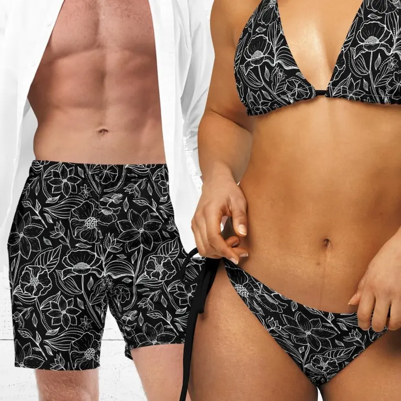 Ocean Breeze Matching Swimsuits, Exotic Floral Couples Beachwear, Forever Honeymoon Essentials, His and Hers Vacation Set