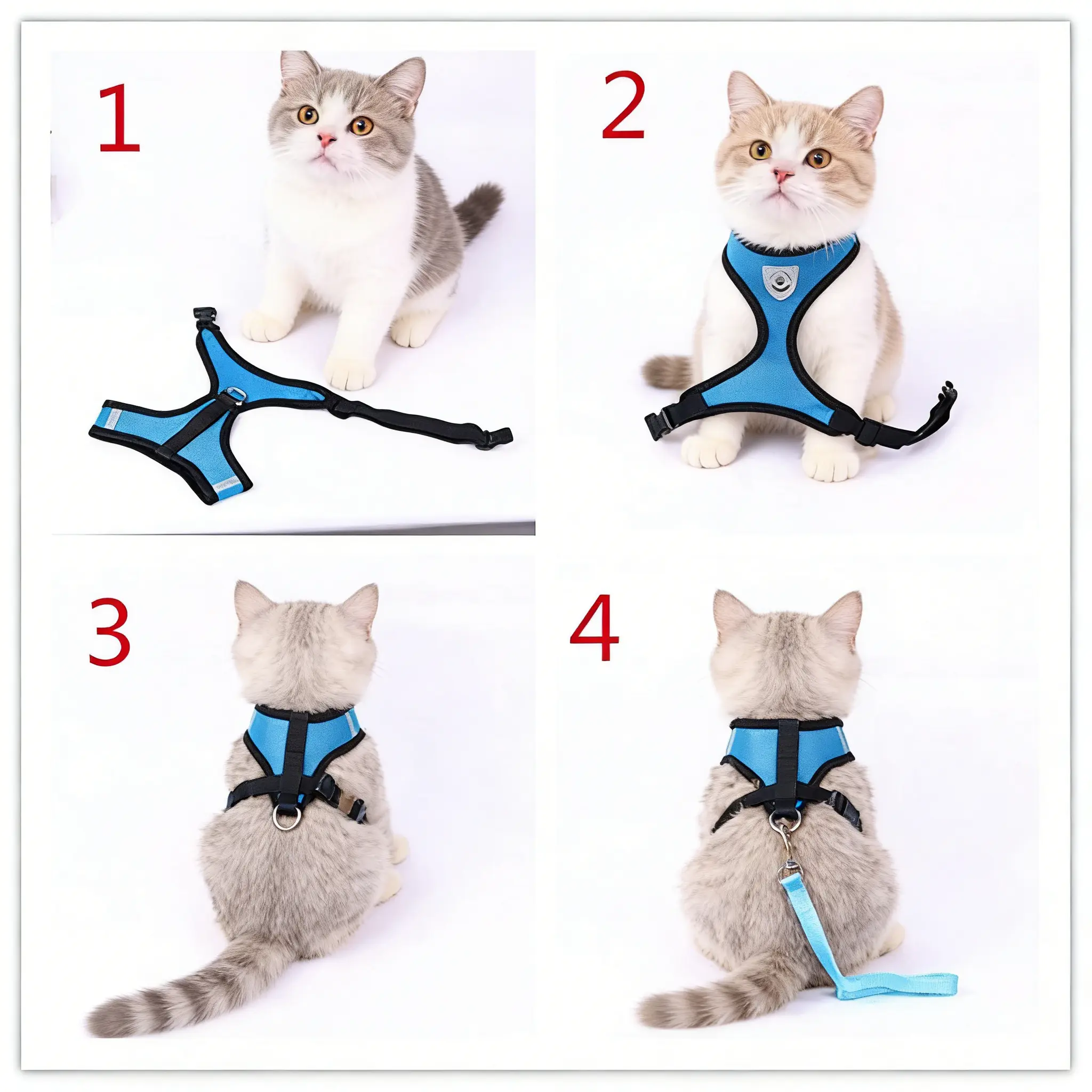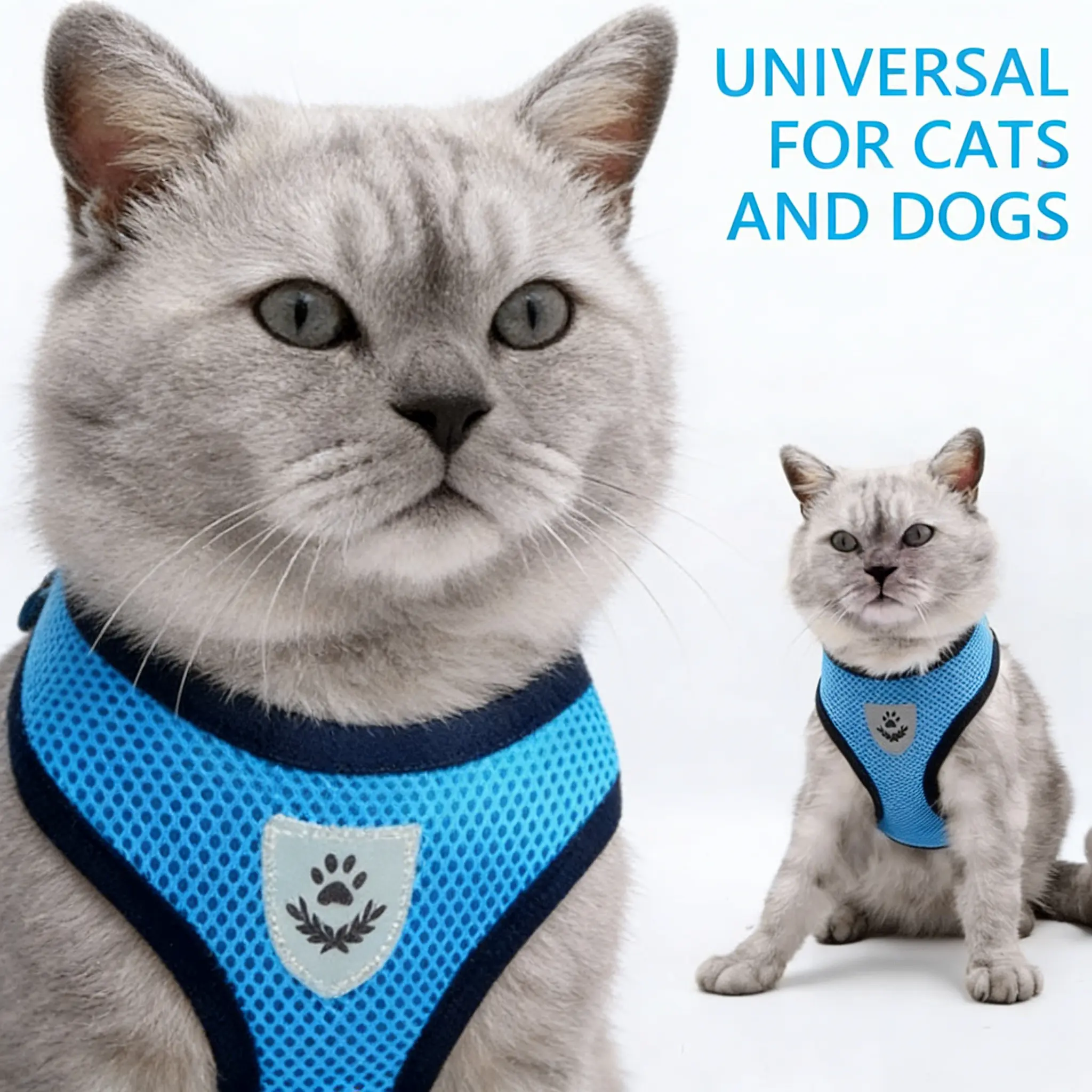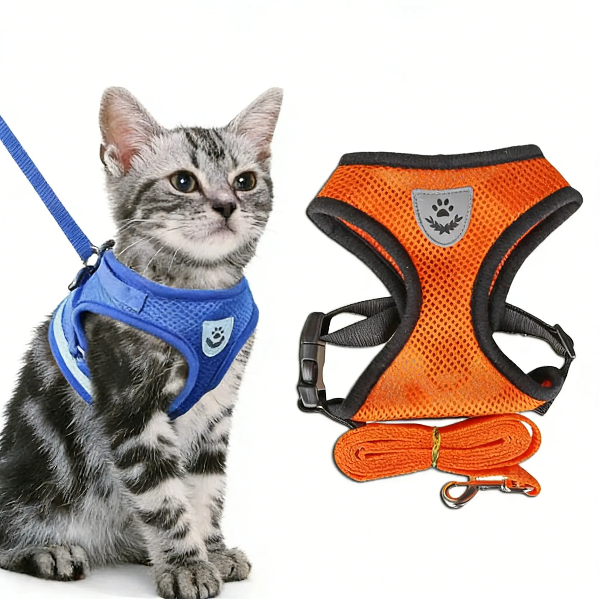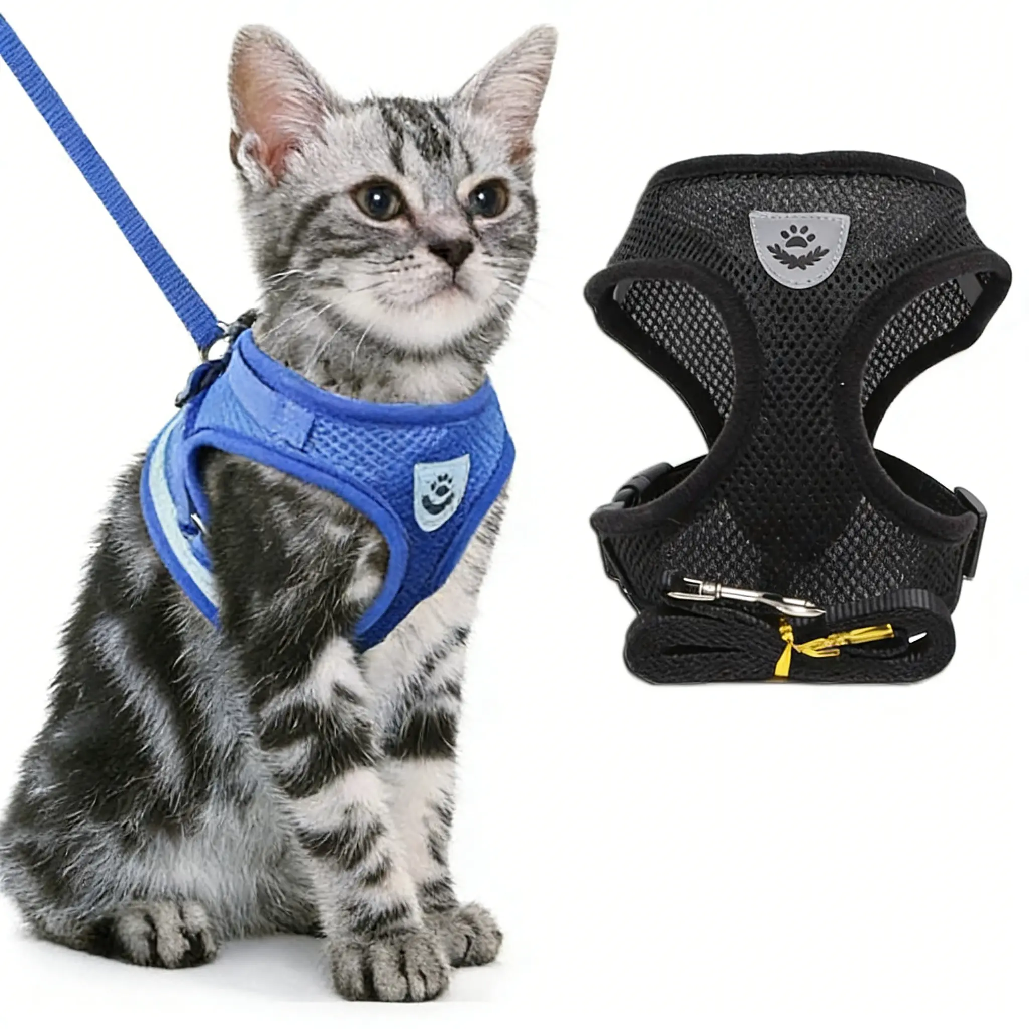 Safe and Comfortable Adjustable Reflective Harness for Cats & Dogs - Control Vest with Matching Leash in Sizes S to XL
