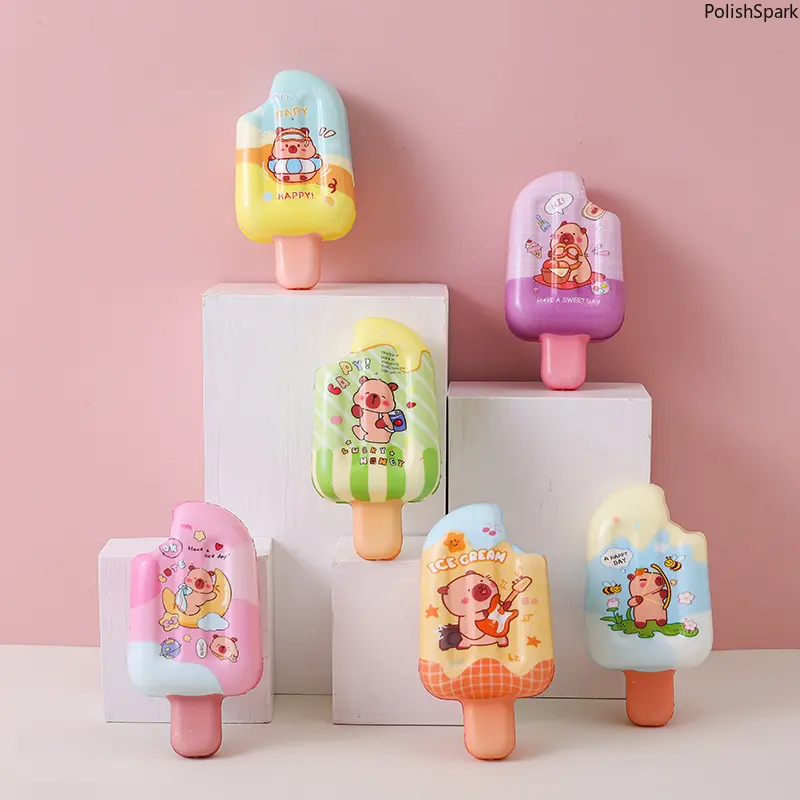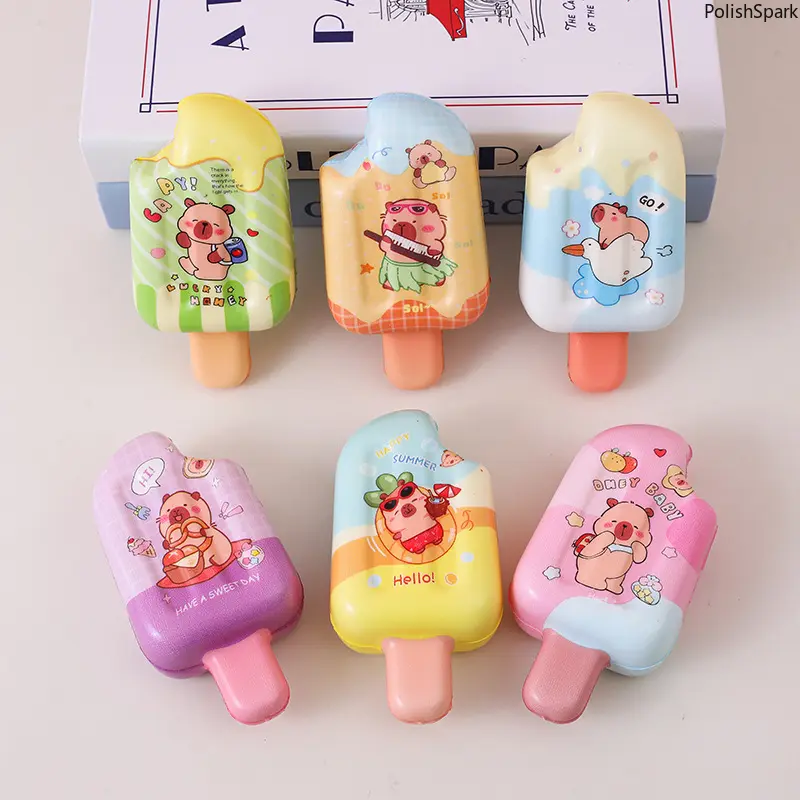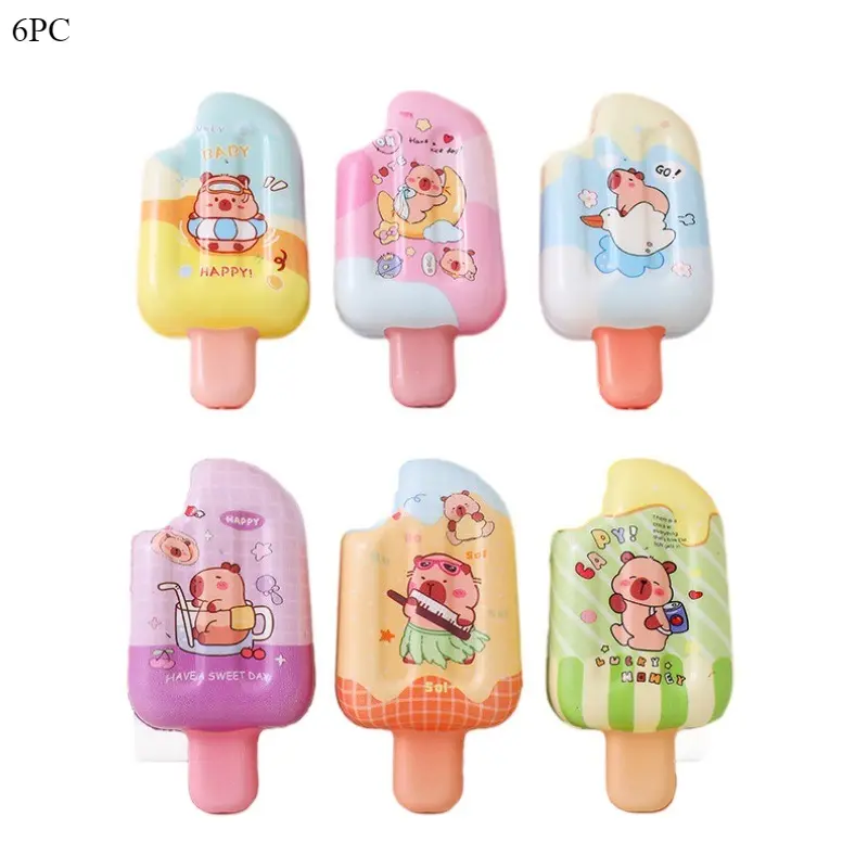 1. Adorable Capybara Ice Cream DesignEach squishy is shaped like a popsicle with charming Capybara cartoon patterns, available in 6 vibrant colors (random mix). The cute, playful design is loved by kids and adults alike, perfect for TikTok toy content, desk decorations, and room decor.