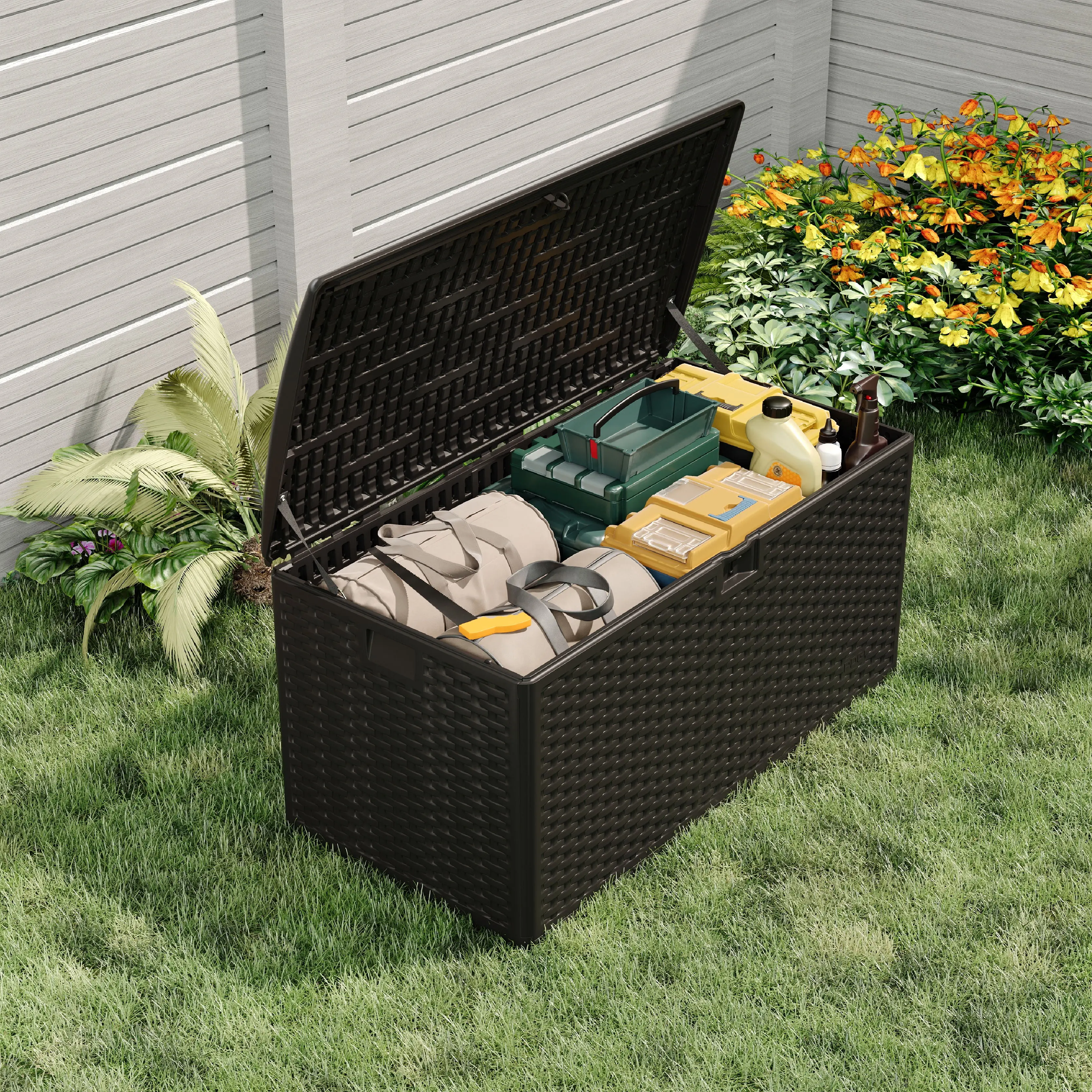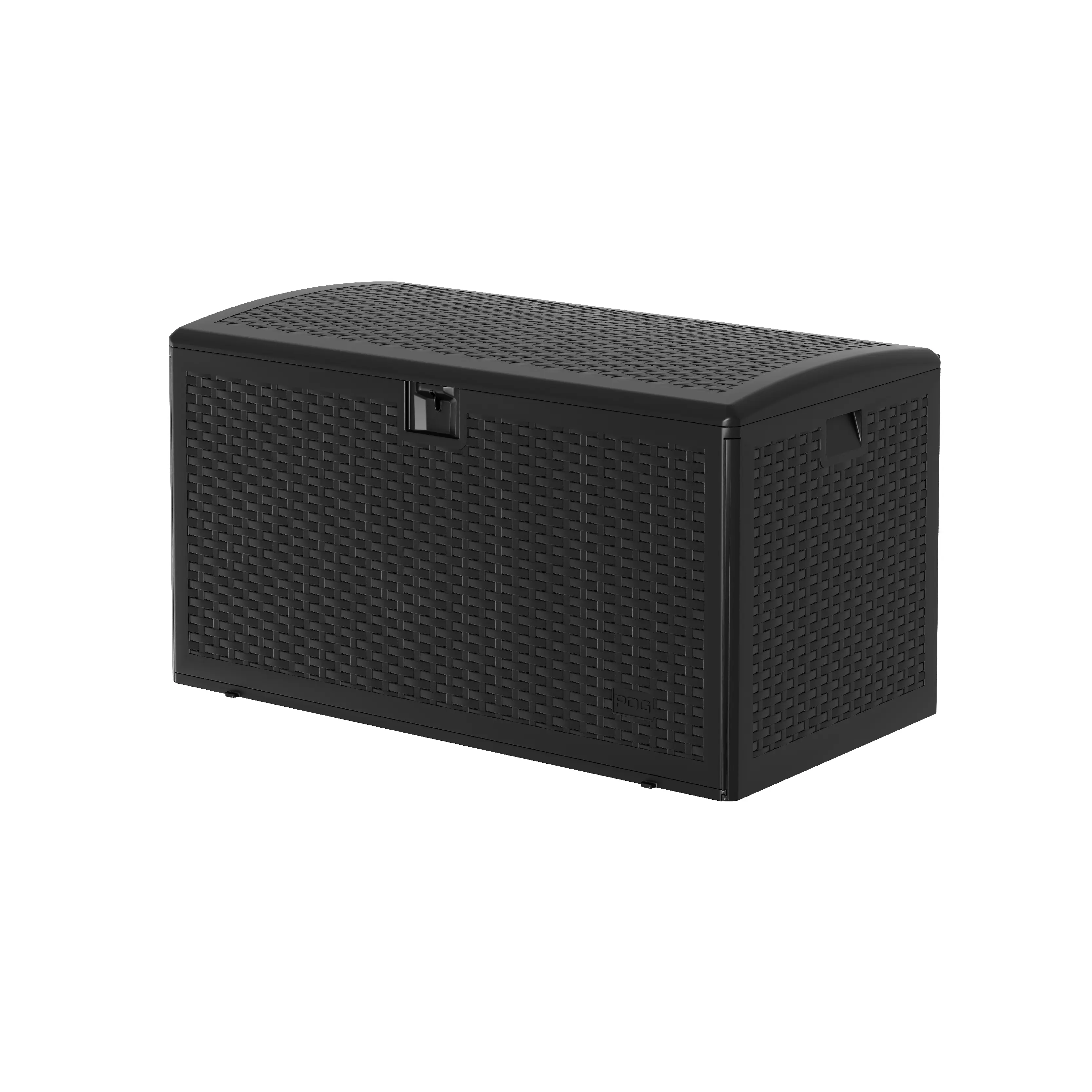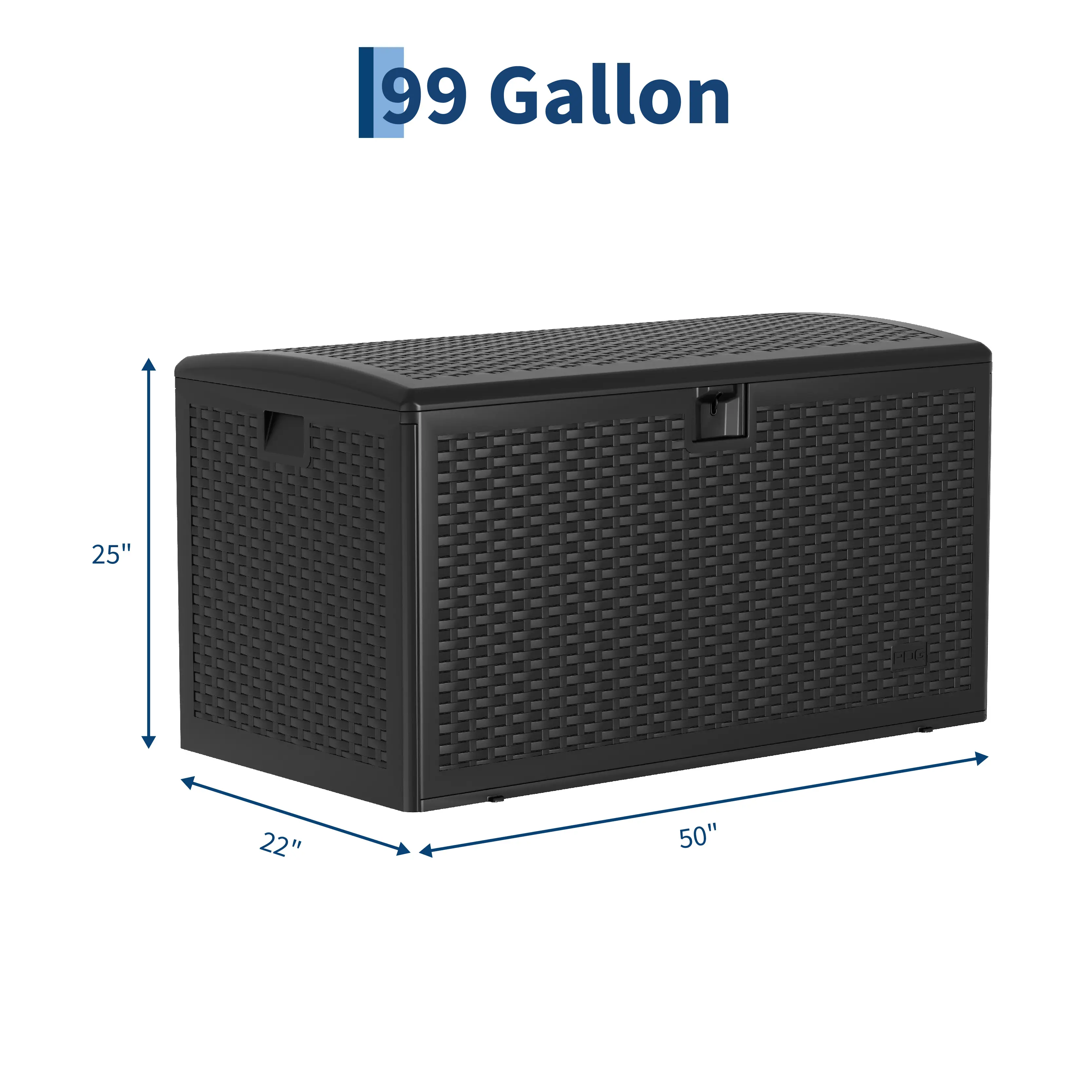 With a large capacity of 99 gallons, this deck box offers ample space to keep your outdoor essentials organized and easily accessible. The lockable feature adds an extra layer of security, giving you peace of mind when storing valuable items. Its stylish wicker resin design complements any outdoor décor, blending seamlessly with your deck, patio, or garden setting.