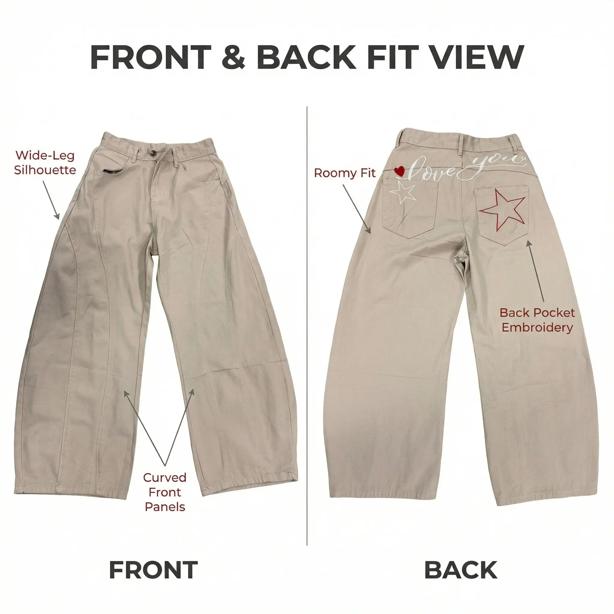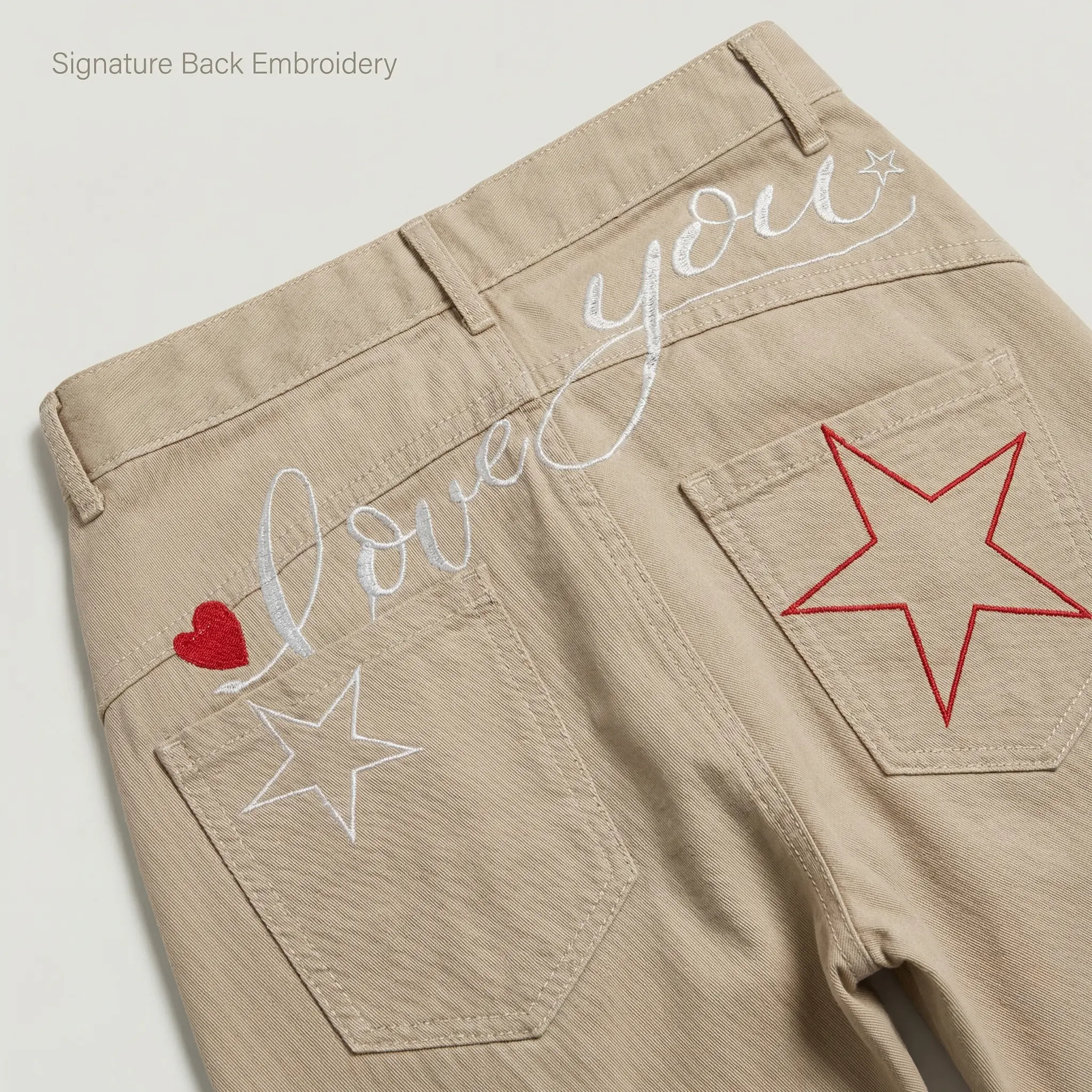 ·Y2K-Inspired Graphics: Featuring coquette star and heart graphics, these jeans bring a trendy, Y2K-inspired look. Perfect for adding a cute and playful touch to your streetwear.