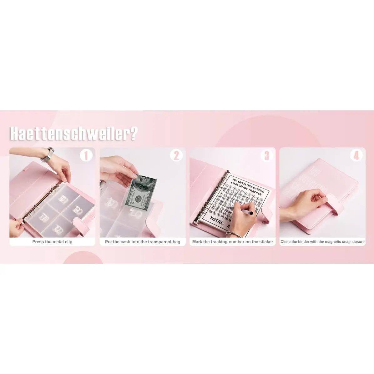 HIGH QUALITY MATERIAL: Our envelope savings challenge book features thick and scratch-resistant PU leather, giving it a substantial and high-end feel. The 25 thick filler pages with 4 pockets per page provide ample space for organizing your cash, while the clear PVC cash envelopes are waterproof and tear-proof, ensuring the safety of your money.
