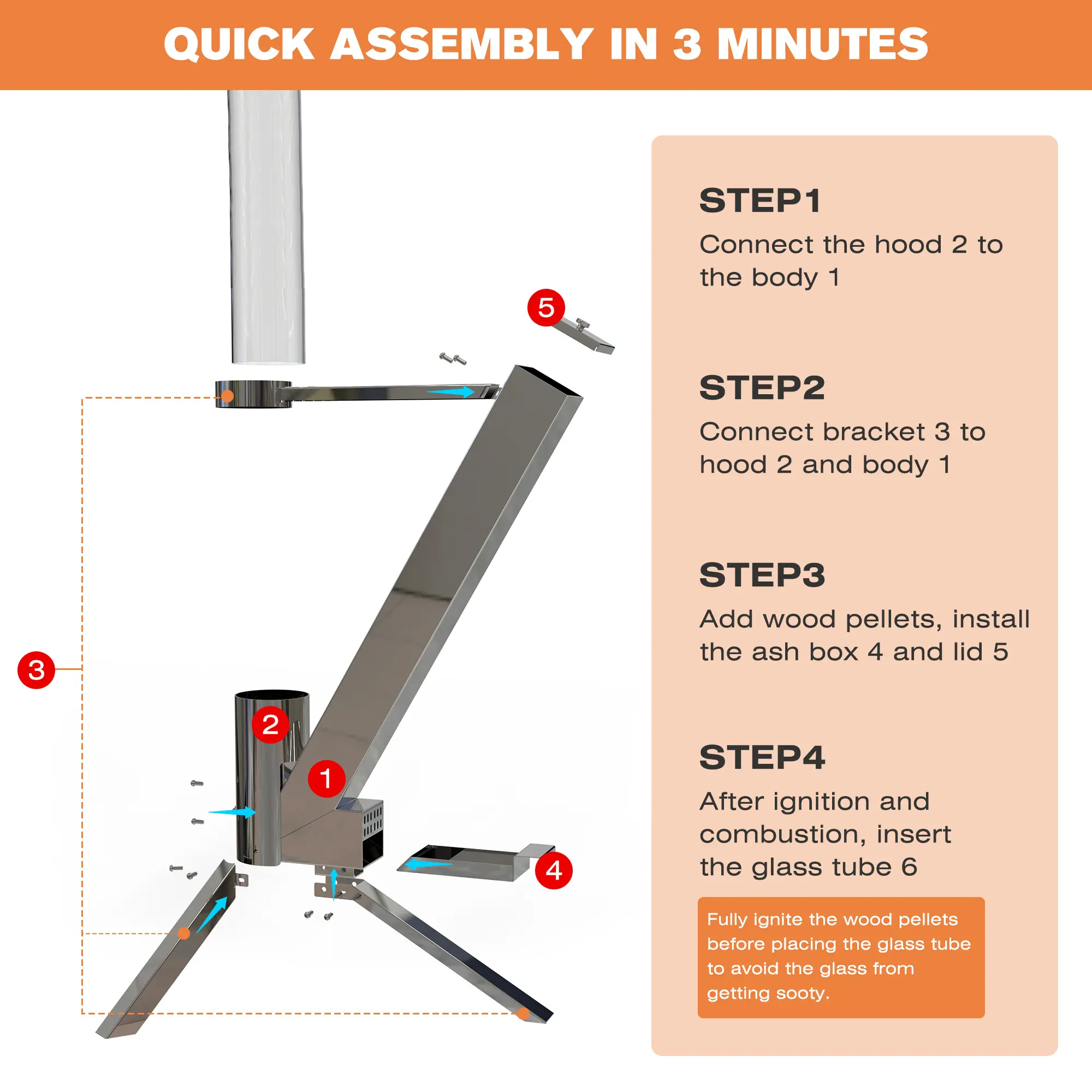 ·【Maintenance and Tips】After the wood pellet catches fire, then put it into the glass tube, otherwise the smoke will quickly blacken the glass tube. Soda and vinegar can clean the blackened glass tubes. Solid alcohol can quickly ignite wood pellets with ashbox. Blowing can start a fire quickly.